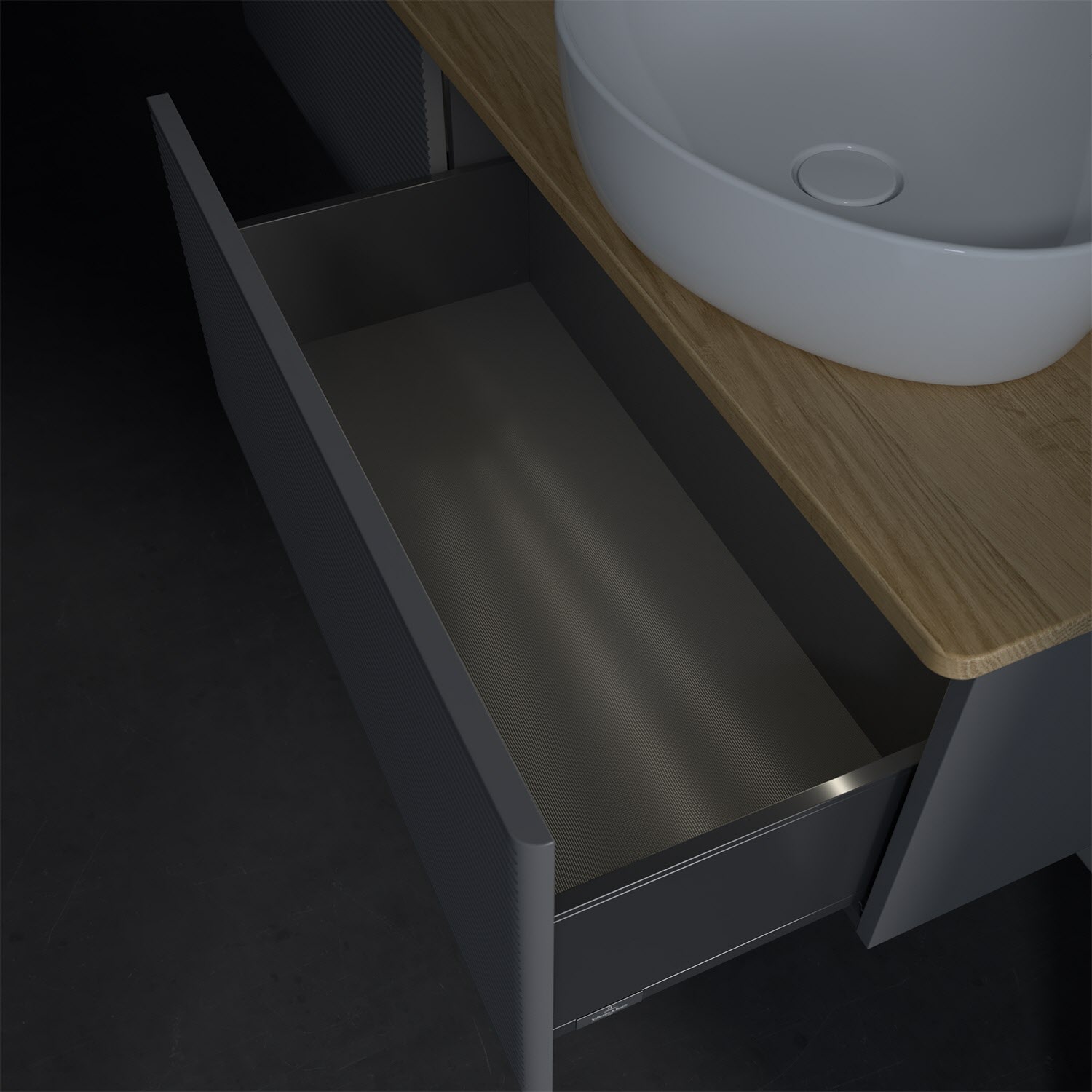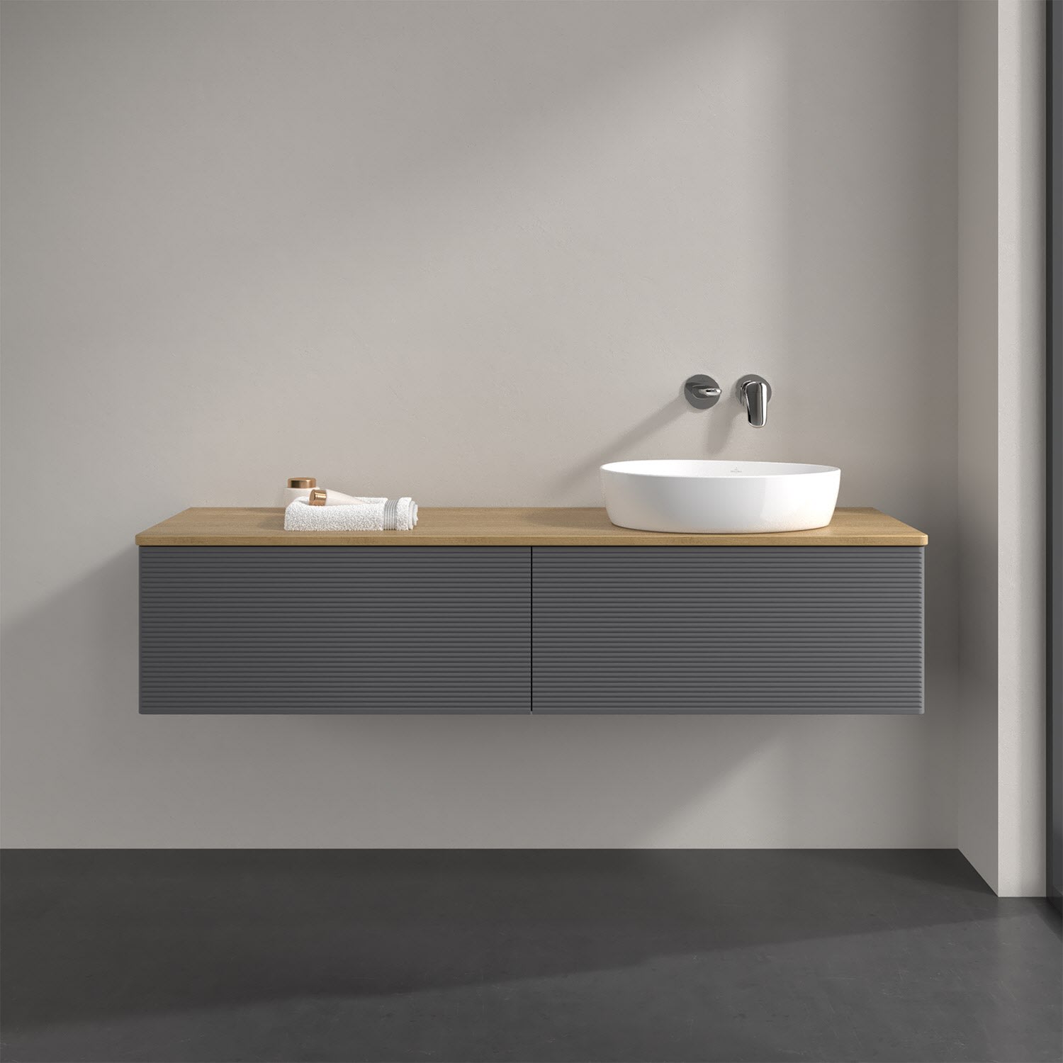 Villeroy & Boch Antao Waschbeckenunterschrank, 160 x 36 cm, 2 Auszüge mit LED-Licht, Front mit Struktur, ohne Hahnloch, für Waschtisch rechts