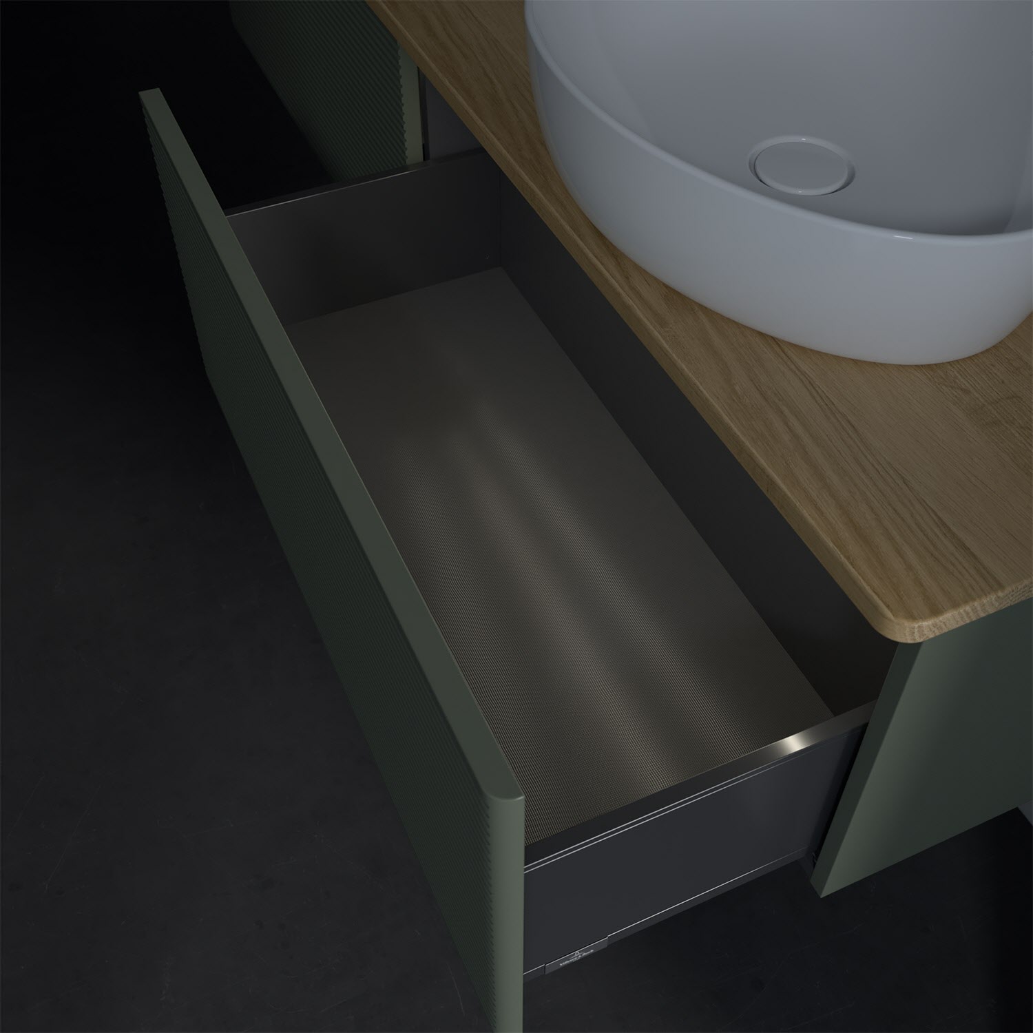- kein Umfallen oder Verrutschen von Pflegeprodukten in den Schubladen dank rutschhemmendem Boden