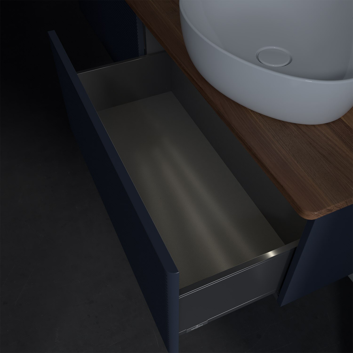 - in Schublade integrierte LED-Leiste mit warmweißem Licht zur Beleuchtung des Innenlebens
