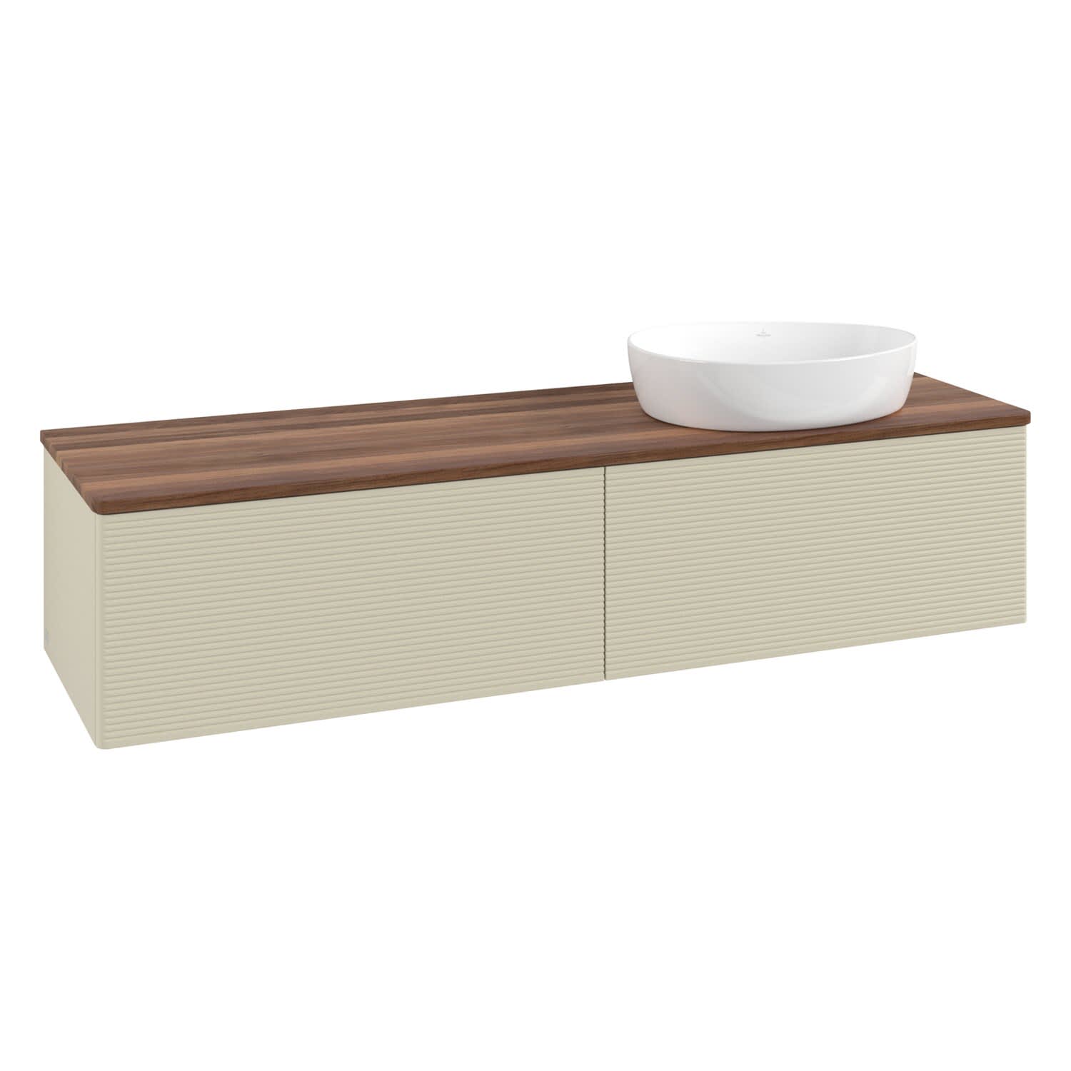 Villeroy & Boch Antao Waschbeckenunterschrank, 160 x 36 cm, 2 Auszüge mit LED-Licht, Front mit Struktur, ohne Hahnloch, für Waschtisch rechts