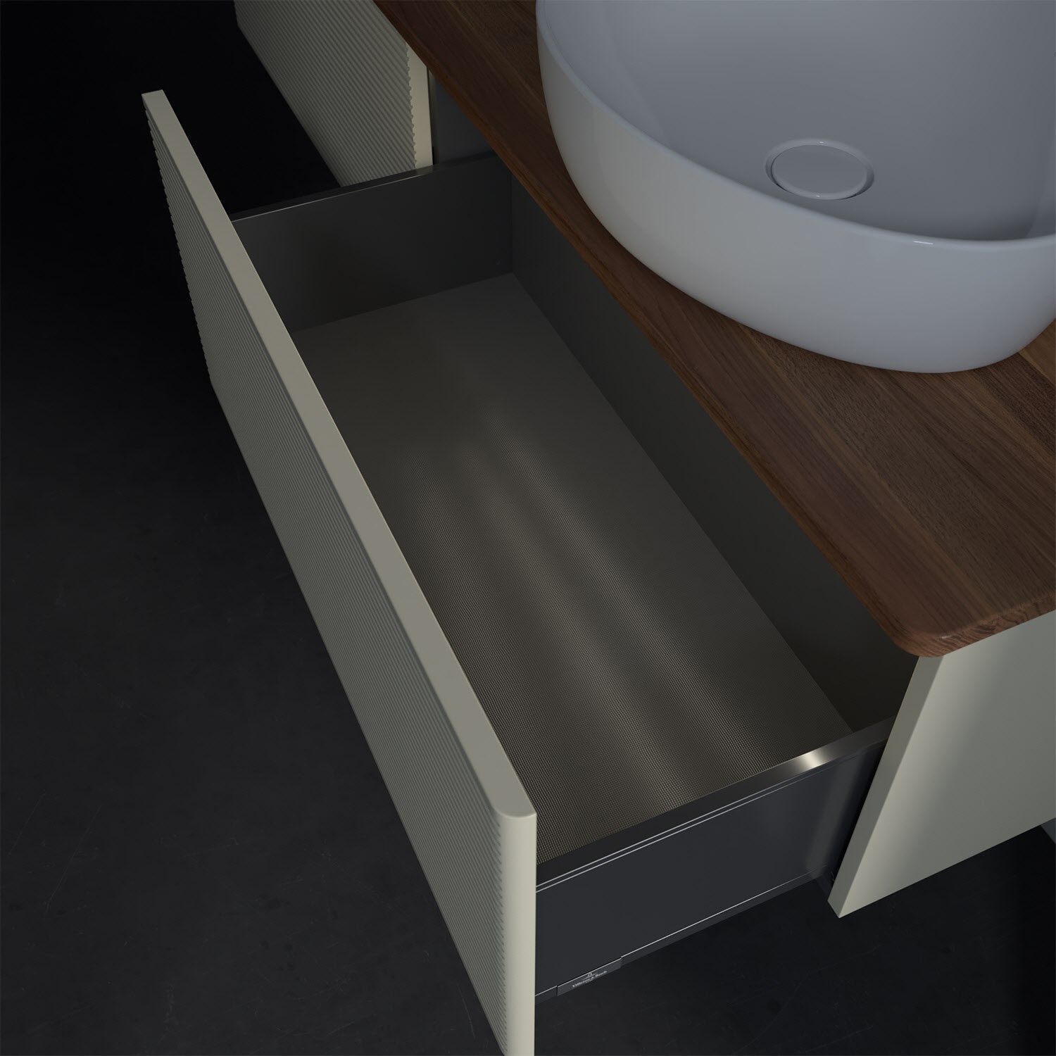 - kein Umfallen oder Verrutschen von Pflegeprodukten in den Schubladen dank rutschhemmendem Boden