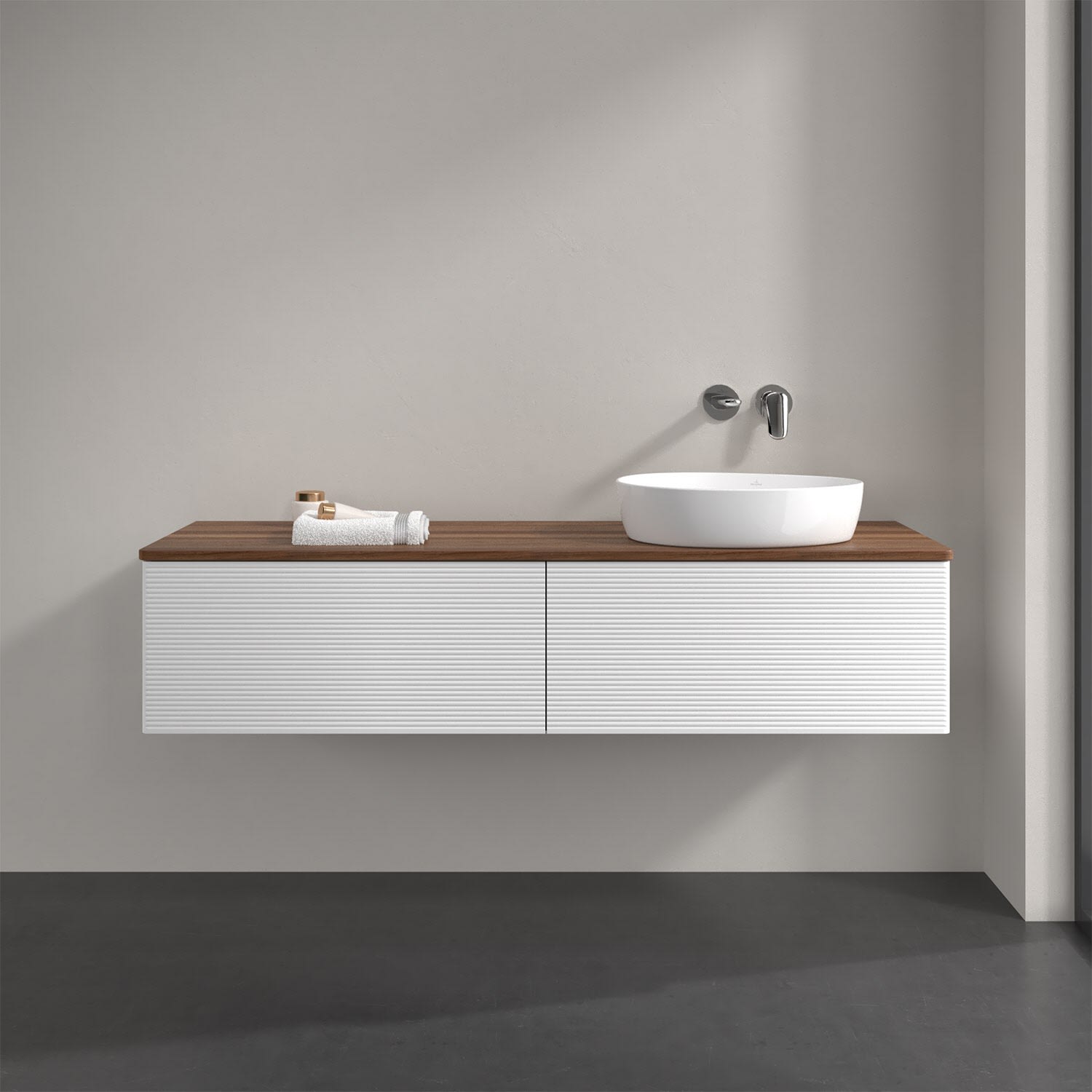 Villeroy & Boch Antao Waschbeckenunterschrank, 160 x 36 cm, 2 Auszüge mit LED-Licht, Front mit Struktur, ohne Hahnloch, für Waschtisch rechts