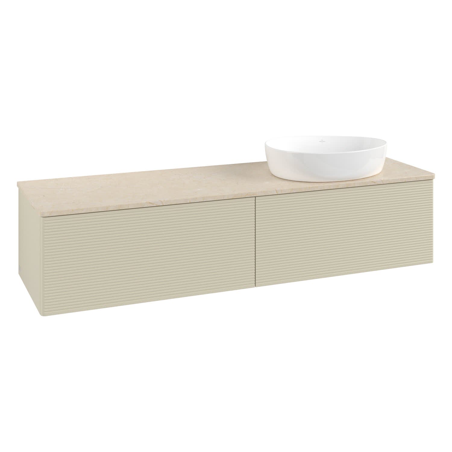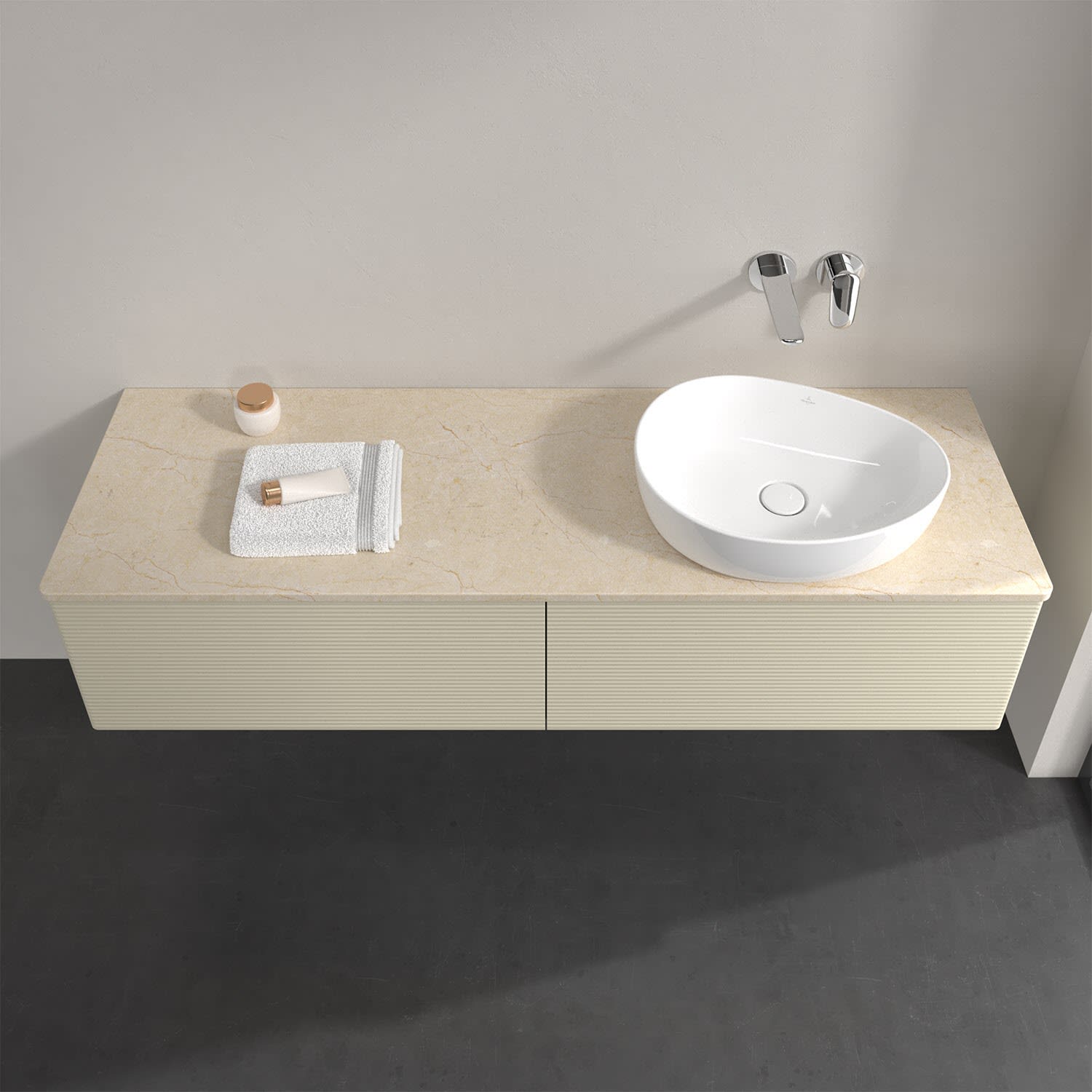 Villeroy & Boch Antao Waschbeckenunterschrank, 160 x 36 cm, 2 Auszüge mit LED-Licht, Front mit Struktur, ohne Hahnloch, für Waschtisch rechts