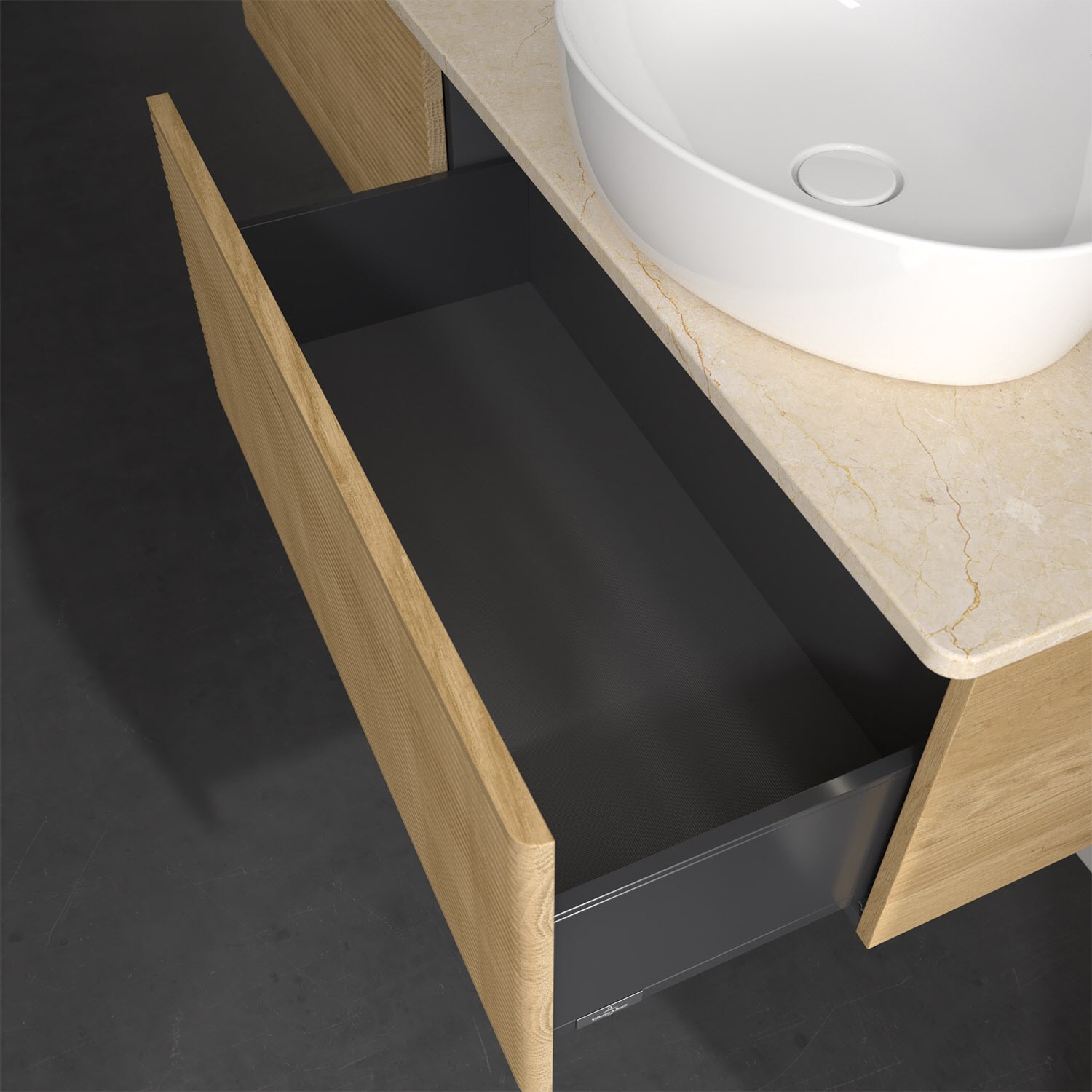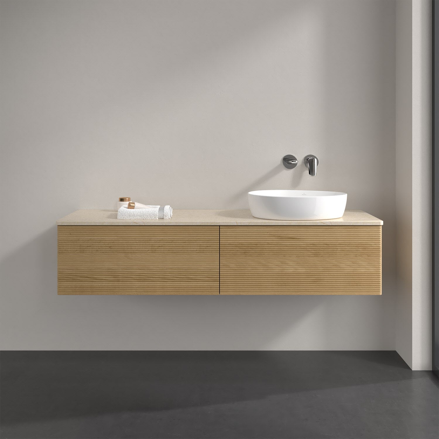 Villeroy & Boch Antao Waschbeckenunterschrank, 160 x 36 cm, 2 Auszüge mit LED-Licht, Front mit Struktur, ohne Hahnloch, für Waschtisch rechts