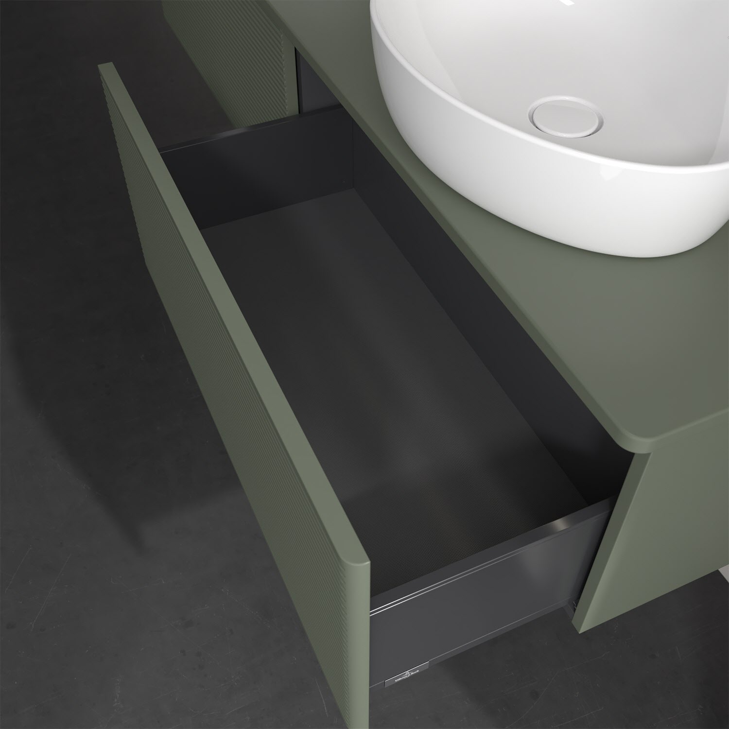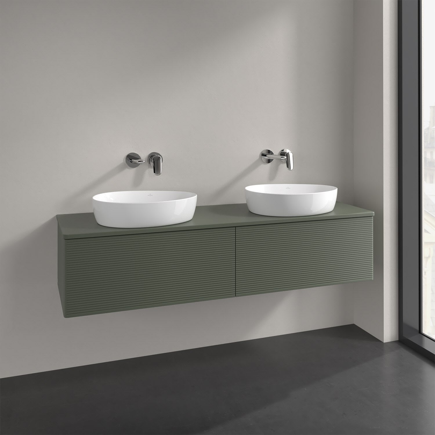 Villeroy & Boch Antao Waschbeckenunterschrank, 160 x 36 cm, 2 Auszüge mit LED-Licht, Front mit Struktur, ohne Hahnloch, für Waschtisch links und recht