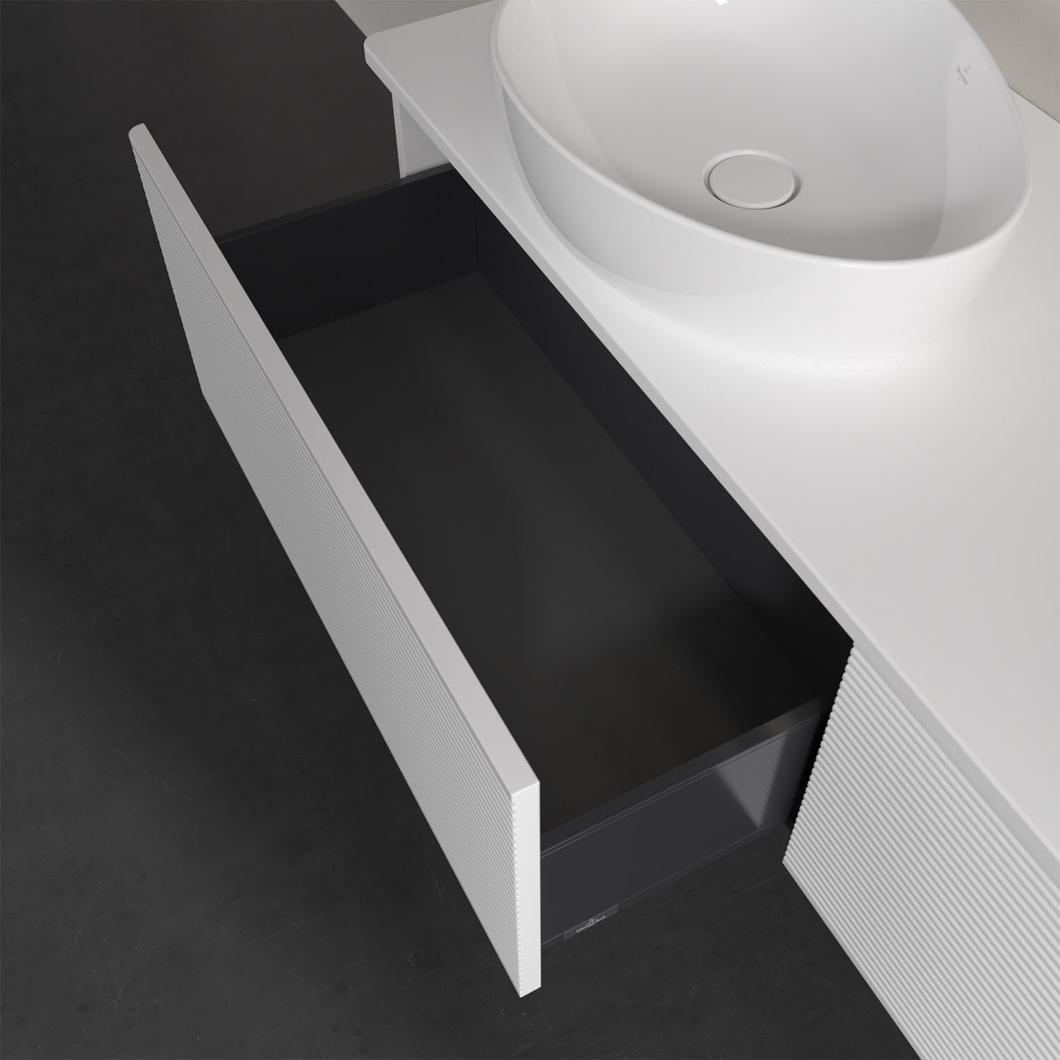 Villeroy & Boch Antao Waschbeckenunterschrank, 160 x 36 cm, 2 Auszüge mit LED-Licht, Front mit Struktur, ohne Hahnloch, für Waschtisch links und recht