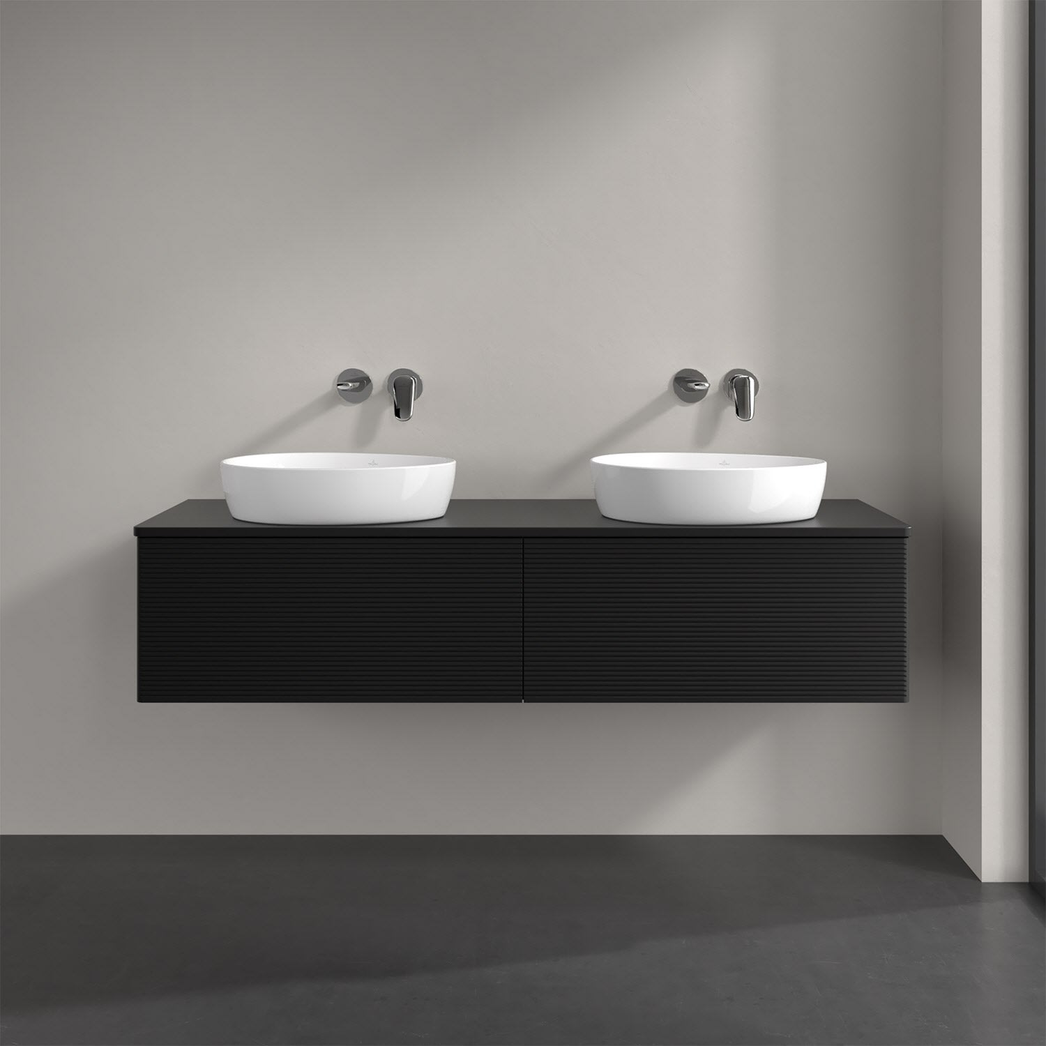 Villeroy & Boch Antao Waschbeckenunterschrank, 160 x 36 cm, 2 Auszüge mit LED-Licht, Front mit Struktur, ohne Hahnloch, für Waschtisch links und recht