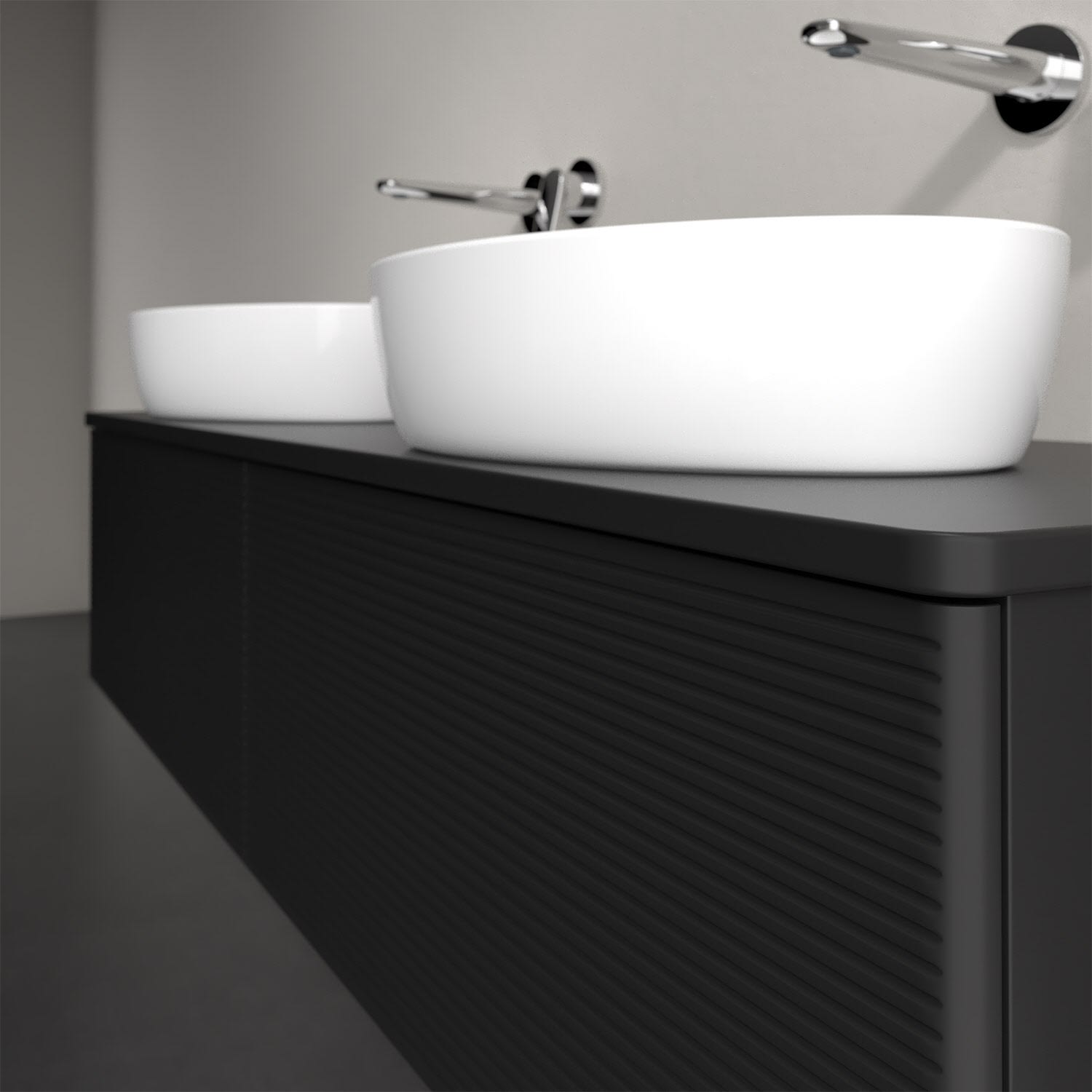 Der wandhängende Antao Waschtischunterschrank für zwei Aufsatzwaschtische bietet mit seinen beiden extra hohen Auszügen und seiner erstaunlichen Größe viel Platz zum Verstauen von Utensilien im Badezimmer. Inspiriert von der Natur überzeugt der Unterschrank auch optisch mit sanfter Formsprache und abgerundete Kanten. Die grifflosen Auszüge mit strukturierter Front sind mit der Push-to-Open Funktion ausgestattet und verfügen über einen Antirutschboden, damit Utensilien sicher verstaut werden können. Den Überblick behält man dank der warmweißen Auszugsbeleuchtung, die sich automatisch beim Öffnen einschaltet. Mit seiner Vollauszug- und Selbsteinzug-Funktion ist der Schrank einfach praktisch und leicht zu bedienen. Qualität von Villeroy & Boch! Für eine besonders leichte Pflege sorgt die mehrschichtig deckend lackierte Oberfläche.