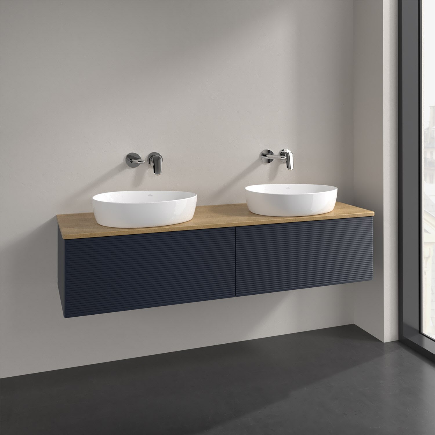 Der wandhängende Antao Waschtischunterschrank für zwei Aufsatzwaschtische bietet mit seinen beiden extra hohen Auszügen und seiner erstaunlichen Größe viel Platz zum Verstauen von Utensilien im Badezimmer. Inspiriert von der Natur überzeugt der Unterschrank auch optisch mit sanfter Formsprache und abgerundete Kanten. Die grifflosen Auszüge mit strukturierter Front sind mit der Push-to-Open Funktion ausgestattet und verfügen über einen Antirutschboden, damit Utensilien sicher verstaut werden können. Den Überblick behält man dank der warmweißen Auszugsbeleuchtung, die sich automatisch beim Öffnen einschaltet. Mit seiner Vollauszug- und Selbsteinzug-Funktion ist der Schrank einfach praktisch und leicht zu bedienen. Qualität von Villeroy & Boch! Für eine besonders leichte Pflege sorgt die mehrschichtig deckend lackierte Oberfläche. Bei der Ausführung in Massivholz wird dank des verarbeiteten Massivholzes jedes Möbel zu einem Unikat, das sich durch das lebendige Naturmaterial durch seine einzigartige Struktur und Maserung auszeichnet.