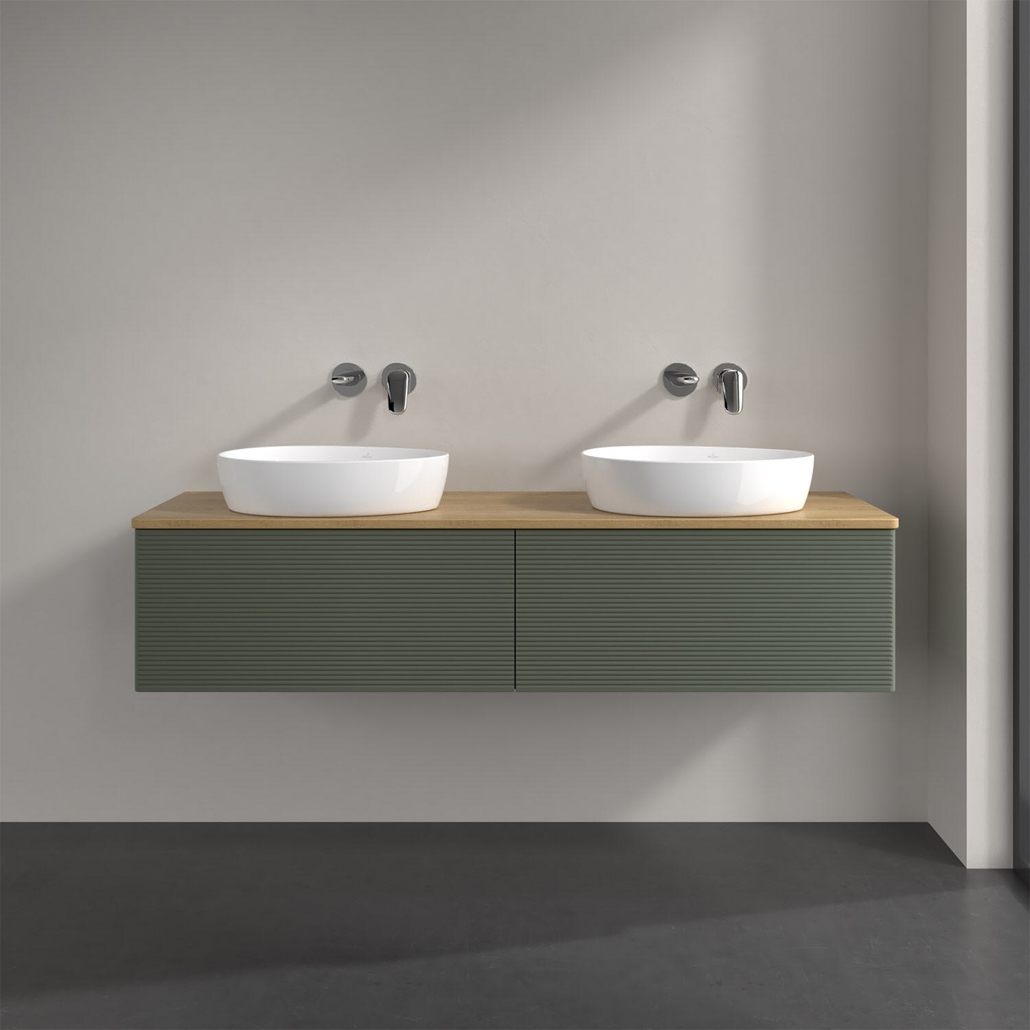 Villeroy & Boch Antao Waschbeckenunterschrank, 160 x 36 cm, 2 Auszüge mit LED-Licht, Front mit Struktur, ohne Hahnloch, für Waschtisch links und recht