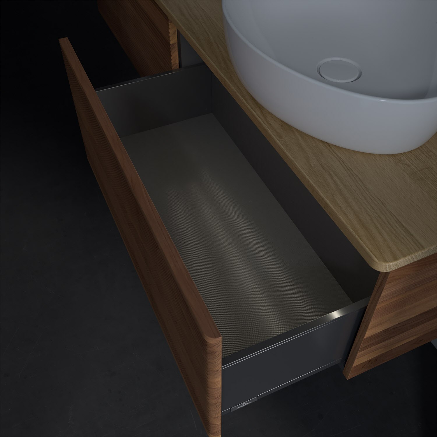 - kein Umfallen oder Verrutschen von Pflegeprodukten in den Schubladen dank rutschhemmendem Boden