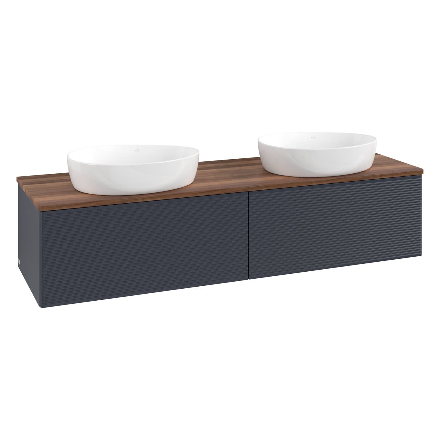 Villeroy & Boch Antao Waschbeckenunterschrank, 160 x 36 cm, 2 Auszüge mit LED-Licht, Front mit Struktur, ohne Hahnloch, für Waschtisch links und recht