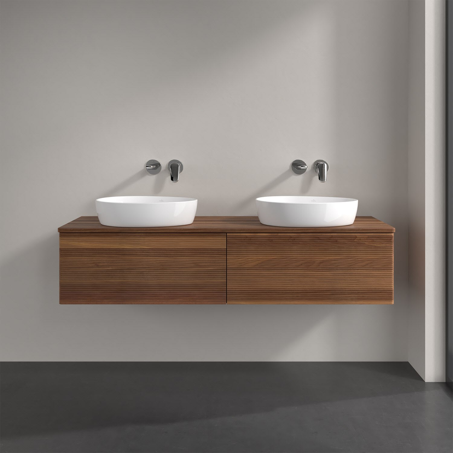 Villeroy & Boch Antao Waschbeckenunterschrank, 160 x 36 cm, 2 Auszüge mit LED-Licht, Front mit Struktur, ohne Hahnloch, für Waschtisch links und recht
