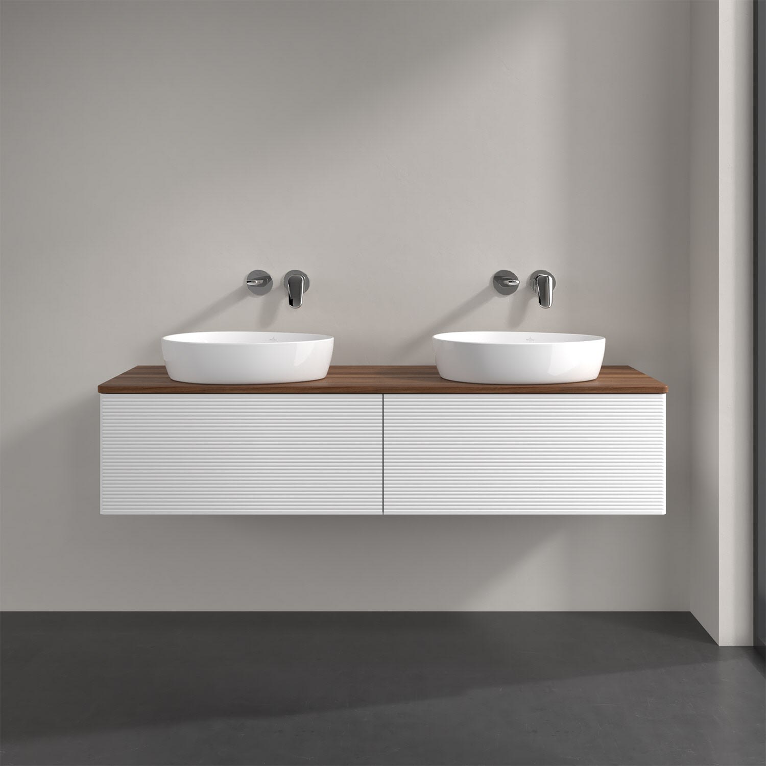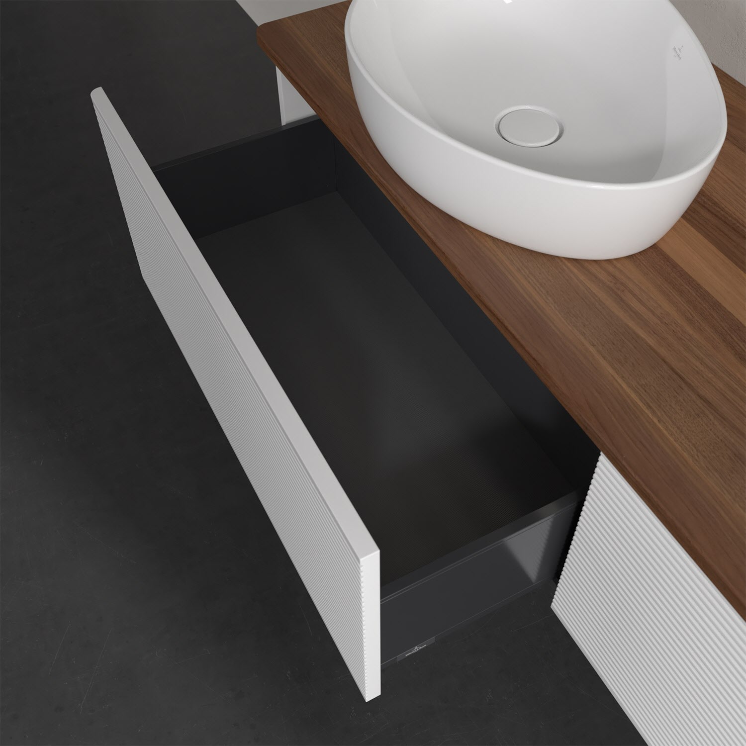 Villeroy & Boch Antao Waschbeckenunterschrank, 160 x 36 cm, 2 Auszüge mit LED-Licht, Front mit Struktur, ohne Hahnloch, für Waschtisch links und recht