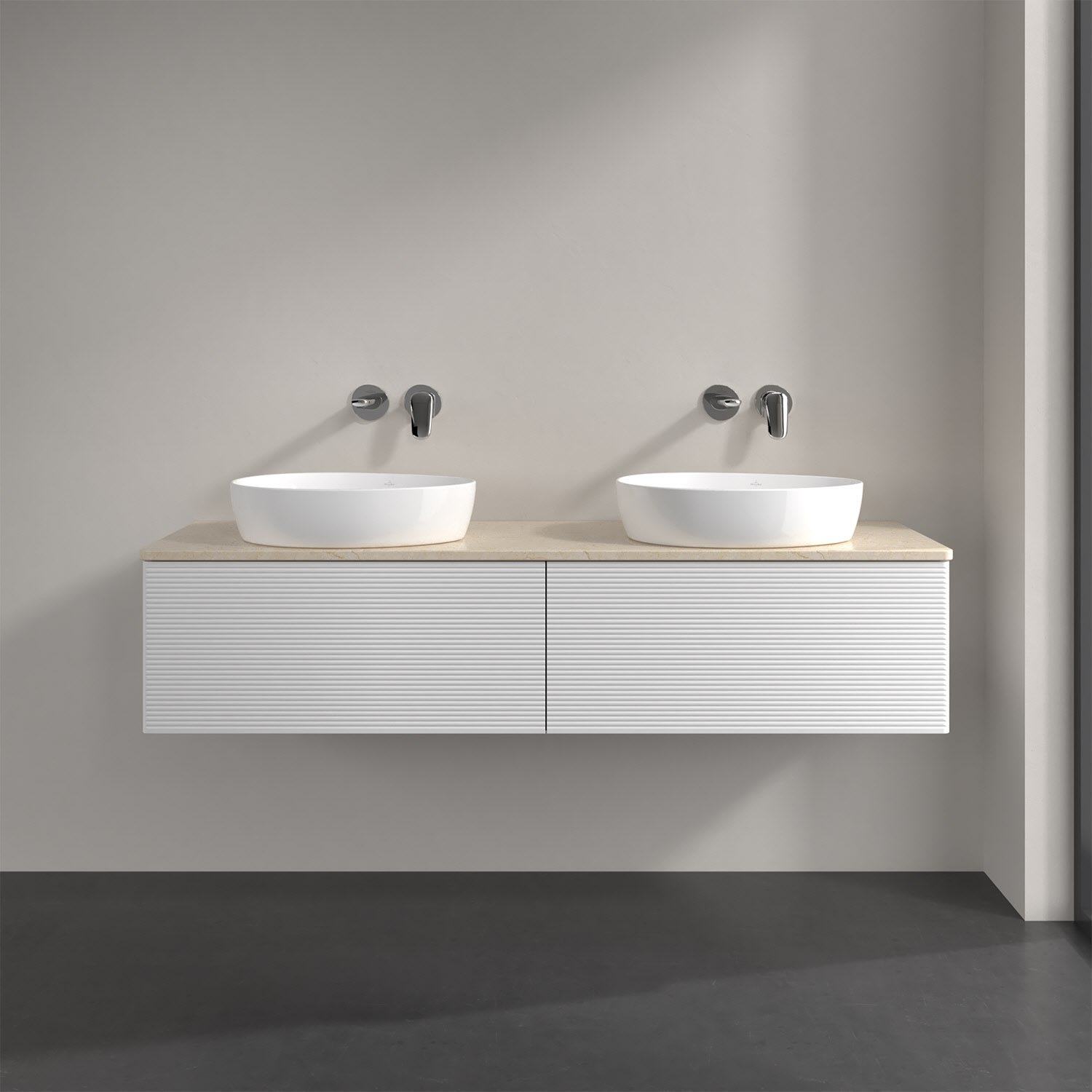 Villeroy & Boch Antao Waschbeckenunterschrank, 160 x 36 cm, 2 Auszüge mit LED-Licht, Front mit Struktur, ohne Hahnloch, für Waschtisch links und recht