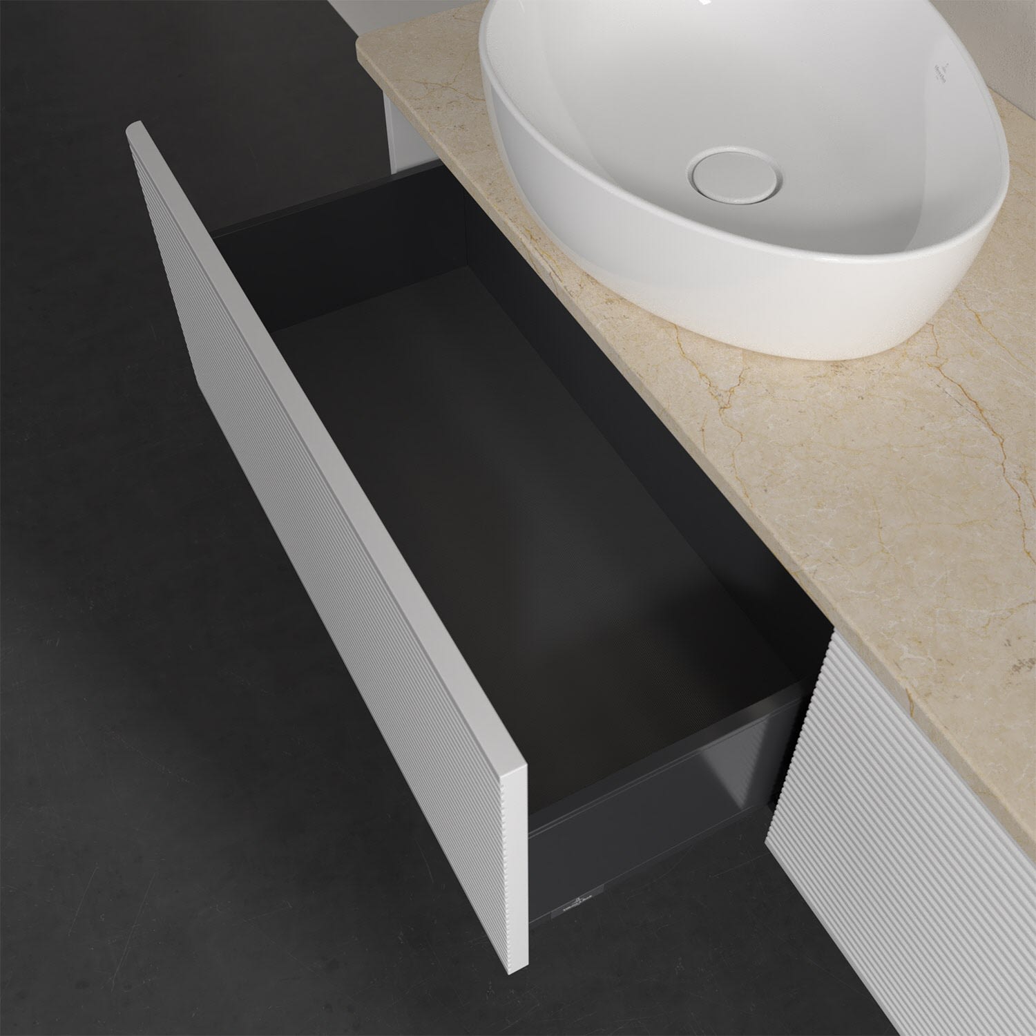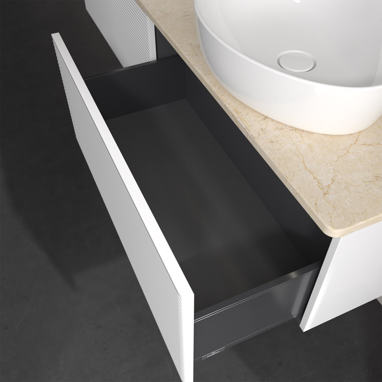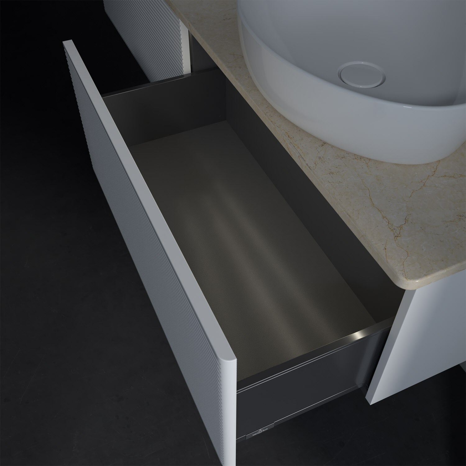- kein Umfallen oder Verrutschen von Pflegeprodukten in den Schubladen dank rutschhemmendem Boden