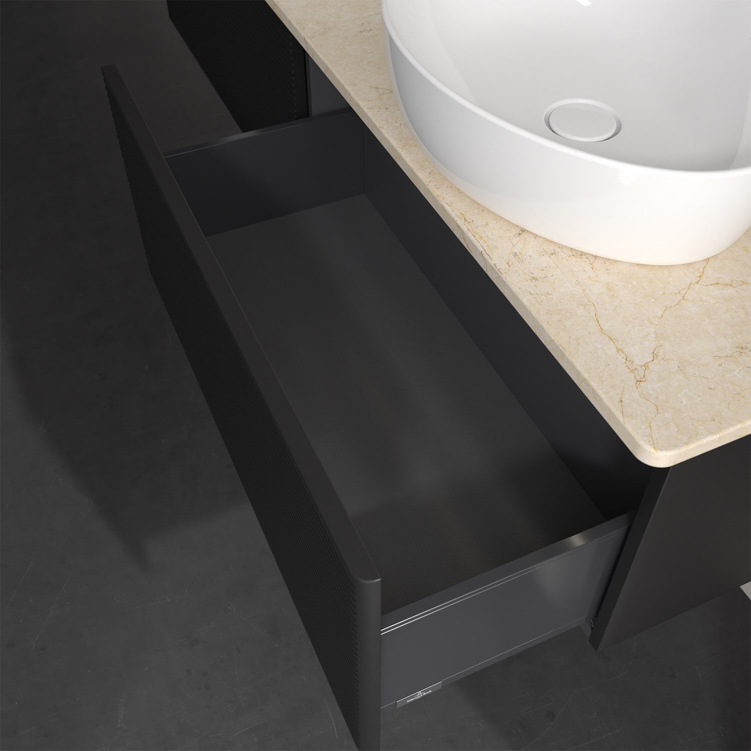 Villeroy & Boch Antao Waschbeckenunterschrank, 160 x 36 cm, 2 Auszüge mit LED-Licht, Front mit Struktur, ohne Hahnloch, für Waschtisch links und recht