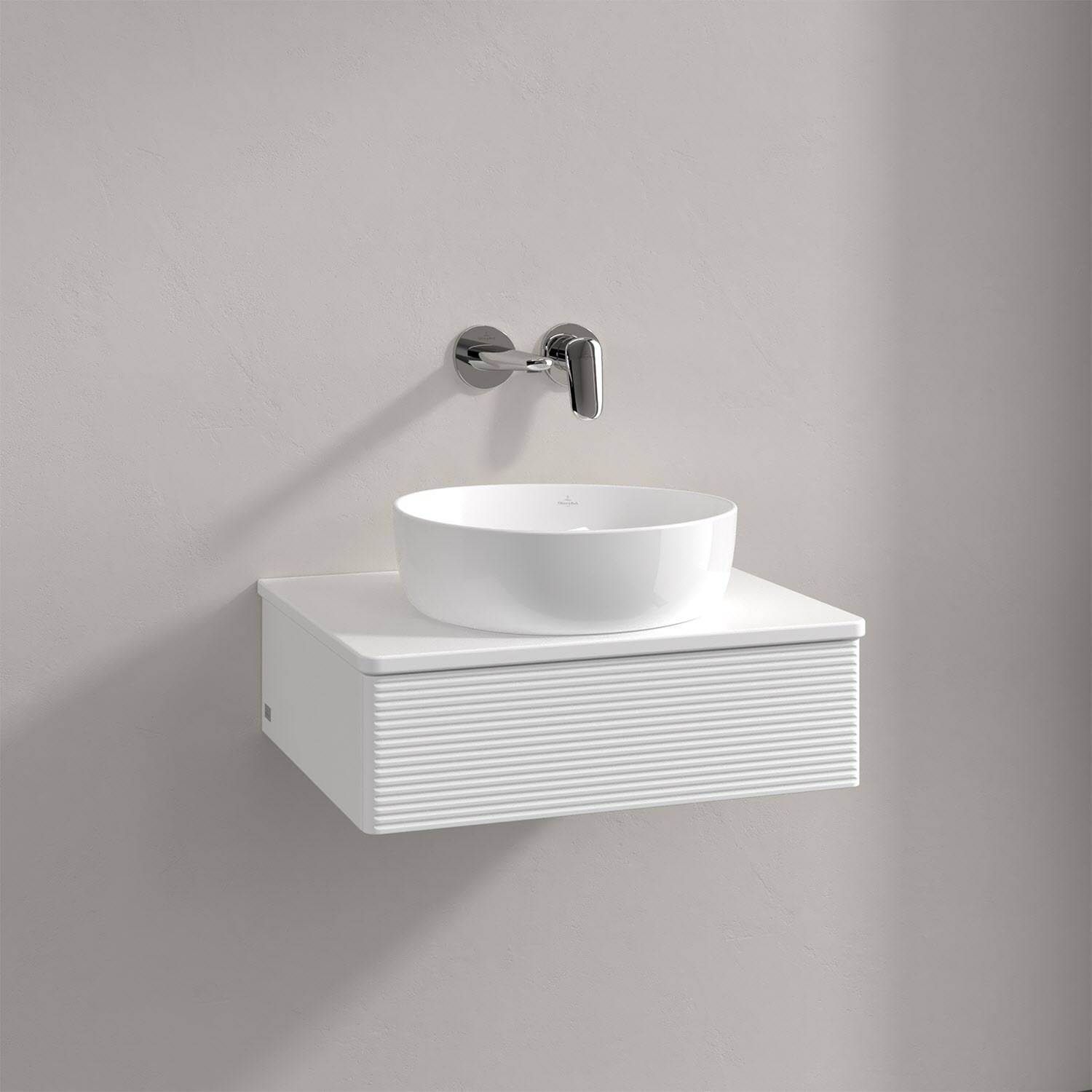 Villeroy & Boch Antao Waschbeckenunterschrank, 60 x 19 cm, 1 Auszug mit LED-Licht, Front mit Struktur, mit Hahnloch