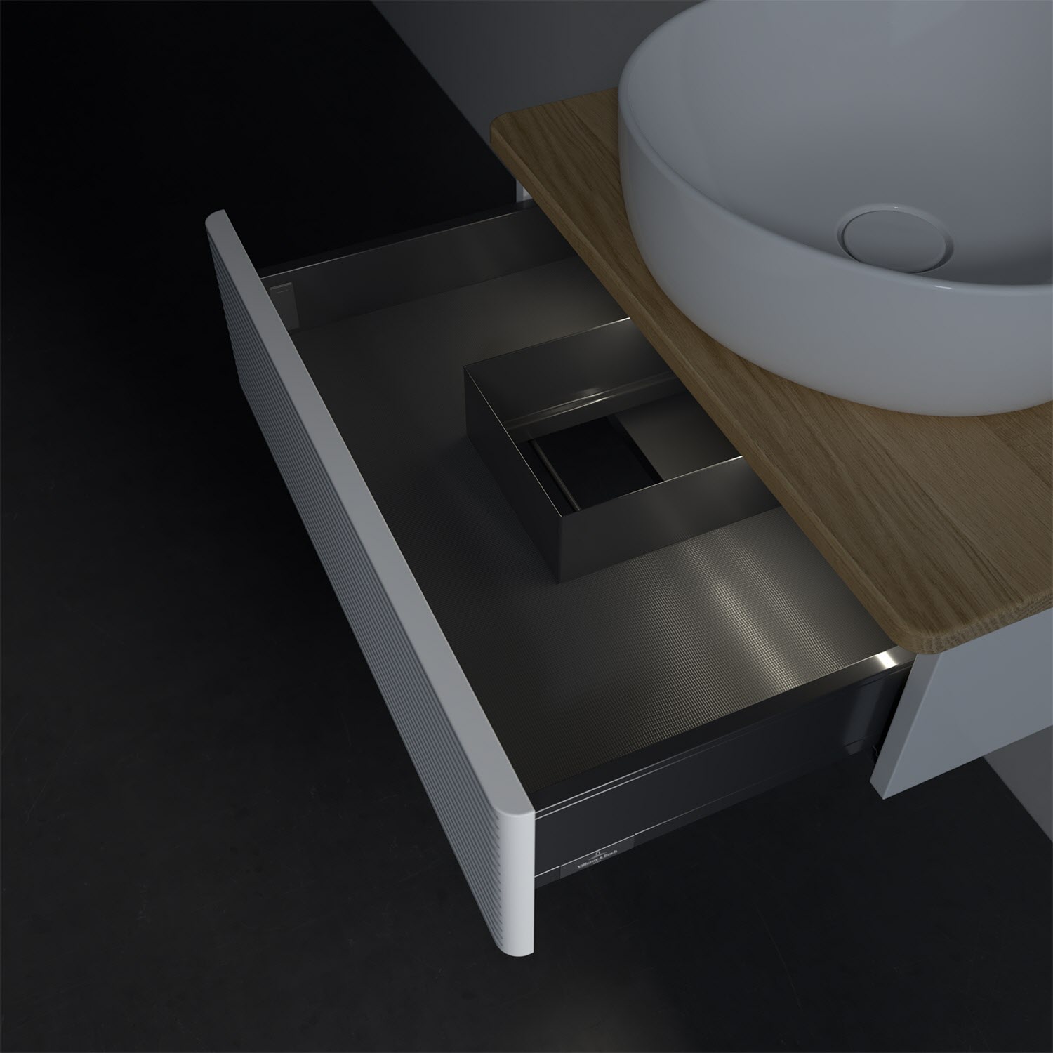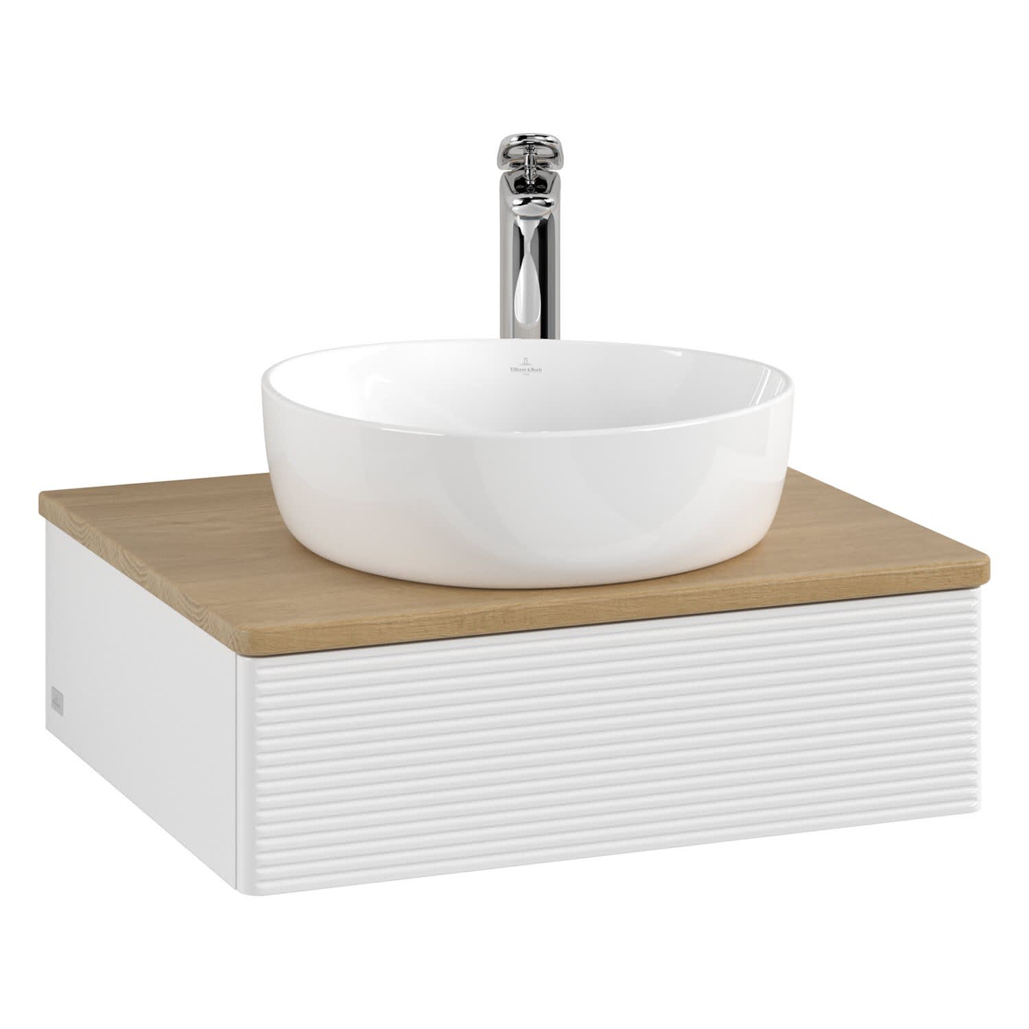 Villeroy & Boch Antao Waschbeckenunterschrank, 60 x 19 cm, 1 Auszug mit LED-Licht, Front mit Struktur, mit Hahnloch