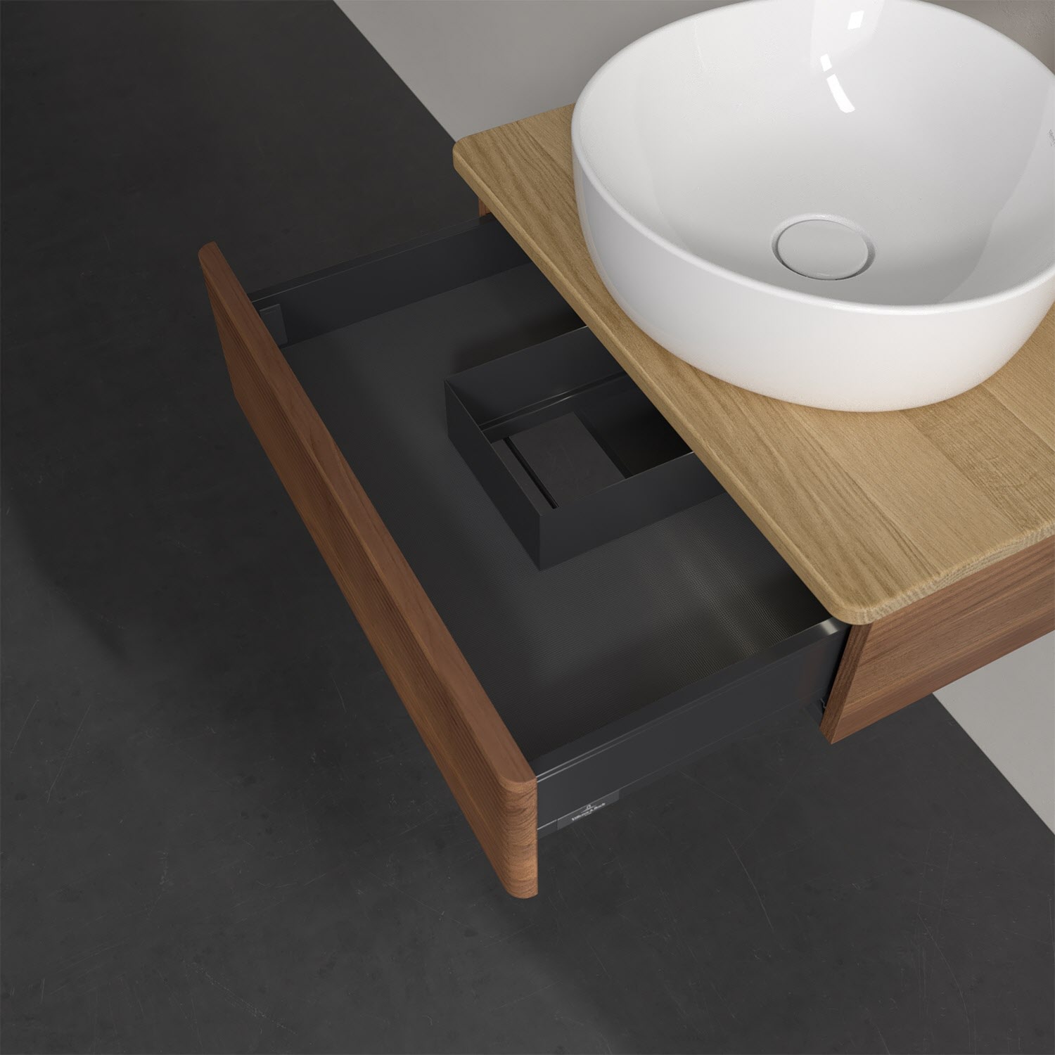 Villeroy & Boch Antao Waschbeckenunterschrank, 60 x 19 cm, 1 Auszug mit LED-Licht, Front mit Struktur, mit Hahnloch