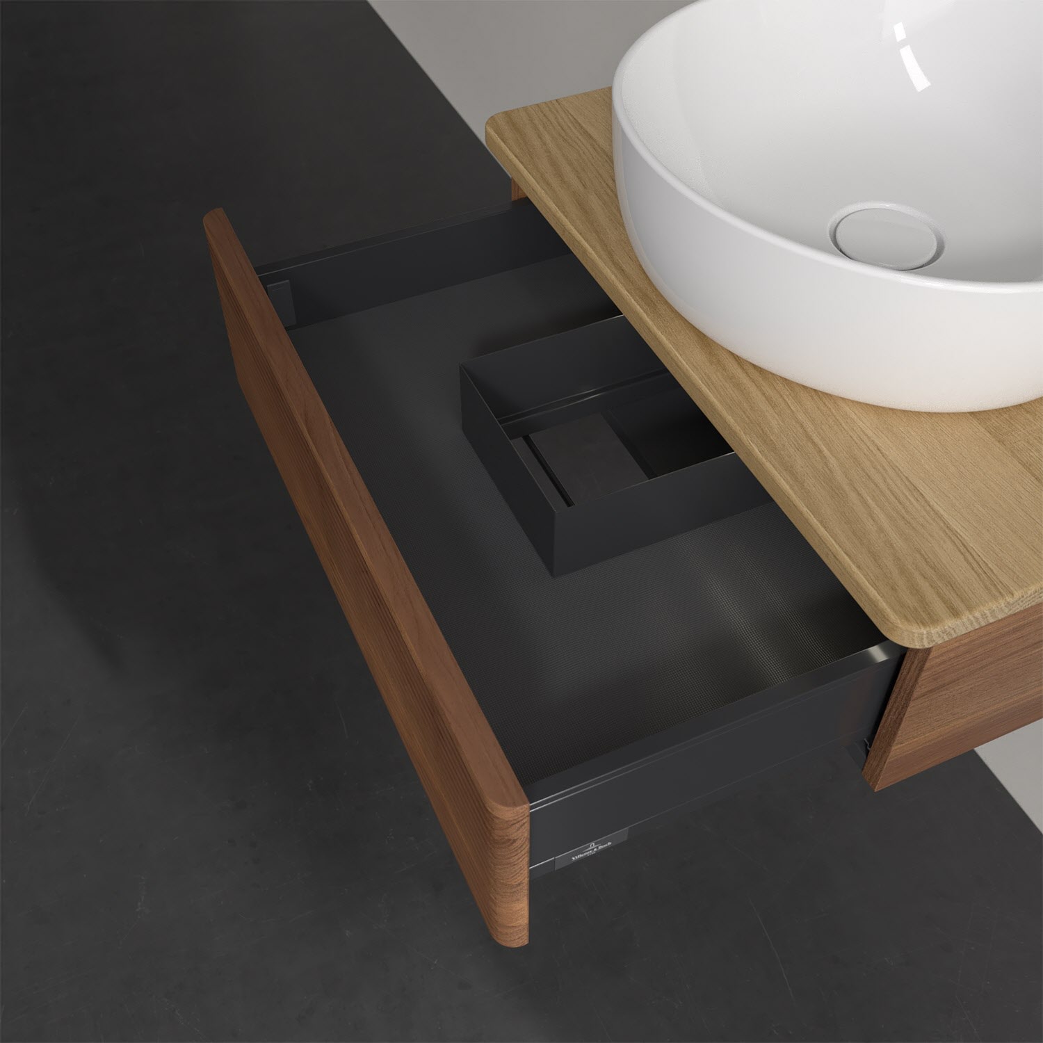 Wenig Platz im Badezimmer und dennoch soll es gemütlich und ordentlich sein? Dann ist der wandhängende Antao Waschtischunterschrank mit seinen sanft abgerundeten Kanten die ideale Lösung. Das geräumige Möbel bietet ausreichend Stauraum für alle nötigen Badutensilien. Zum Öffnen genügt dank der Push-to-Open Funktion ein leichter Druck auf den grifflosen Auszug mit strukturierter Front, der sich dann in seiner vollen Tiefe öffnet. Dabei wird gleichzeitig die angenehme Auszugsbeleuchtung in Warmweiß aktiviert. Das garantiert den benötigen Überblick! Praktisch ist auch der integrierte Antirutschboden und die SoftClosing Funktion, die ein Umfallen oder Verrutschen der verstauten Produkte verhindern. Villeroy & Boch hat alles durchdacht! Für eine besonders leichte Pflege sorgt die mehrschichtig deckend lackierte Oberfläche. Bei der Ausführung in Massivholz wird dank des verarbeiteten Massivholzes jedes Möbel zu einem Unikat, das sich durch das lebendige Naturmaterial durch seine einzigartige Struktur und Maserung auszeichnet.