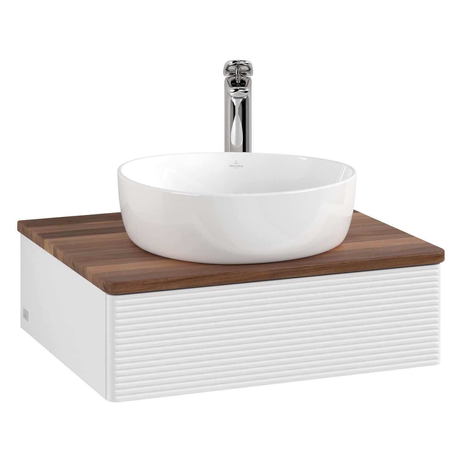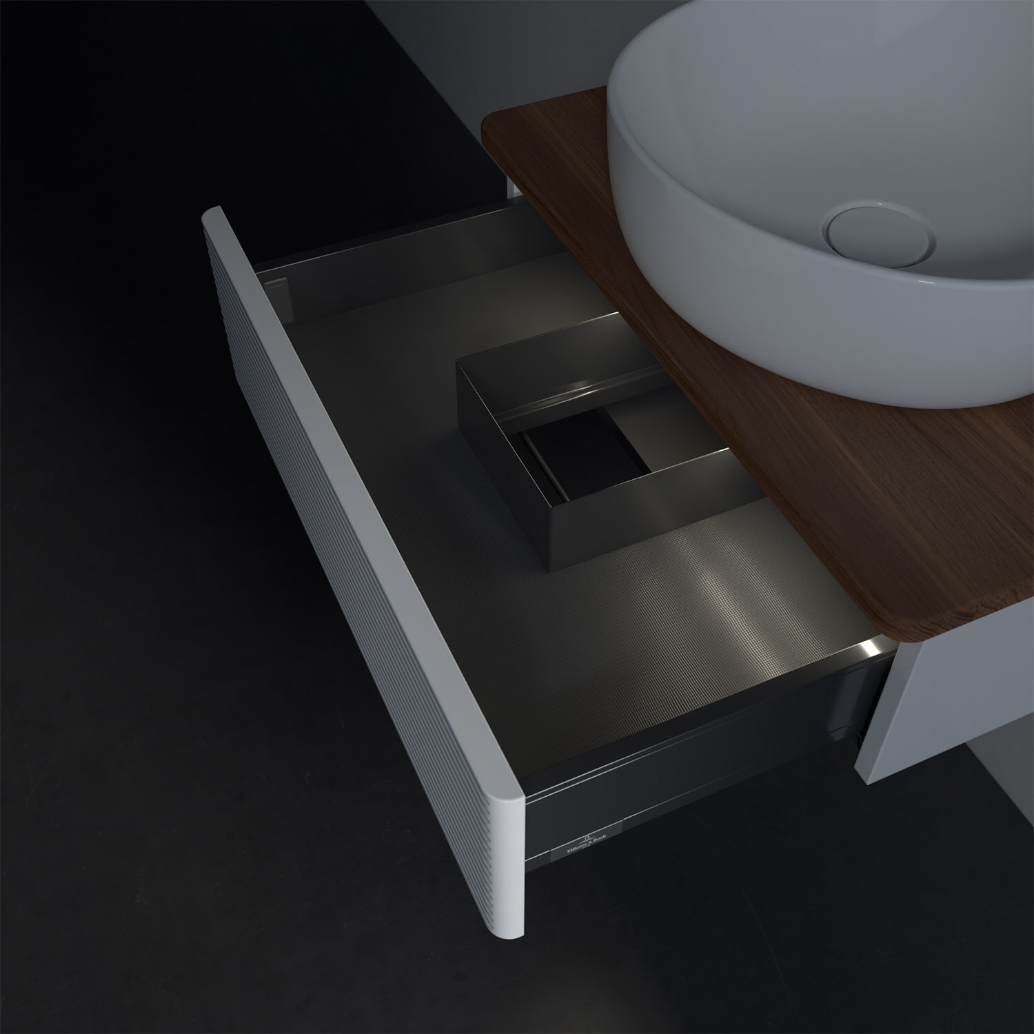 Villeroy & Boch Antao Waschbeckenunterschrank, 60 x 19 cm, 1 Auszug mit LED-Licht, Front mit Struktur, mit Hahnloch