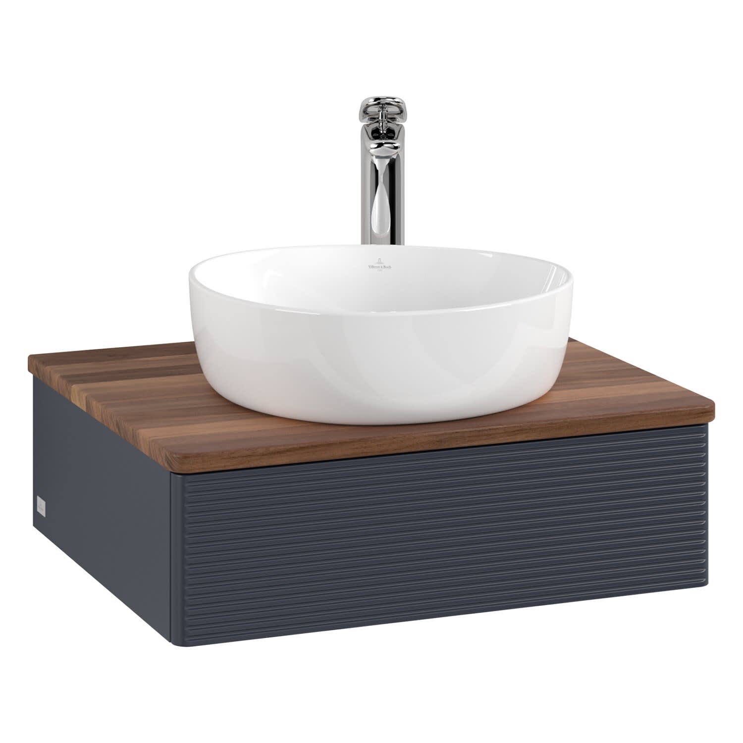 Villeroy & Boch Antao Waschbeckenunterschrank, 60 x 19 cm, 1 Auszug mit LED-Licht, Front mit Struktur, mit Hahnloch