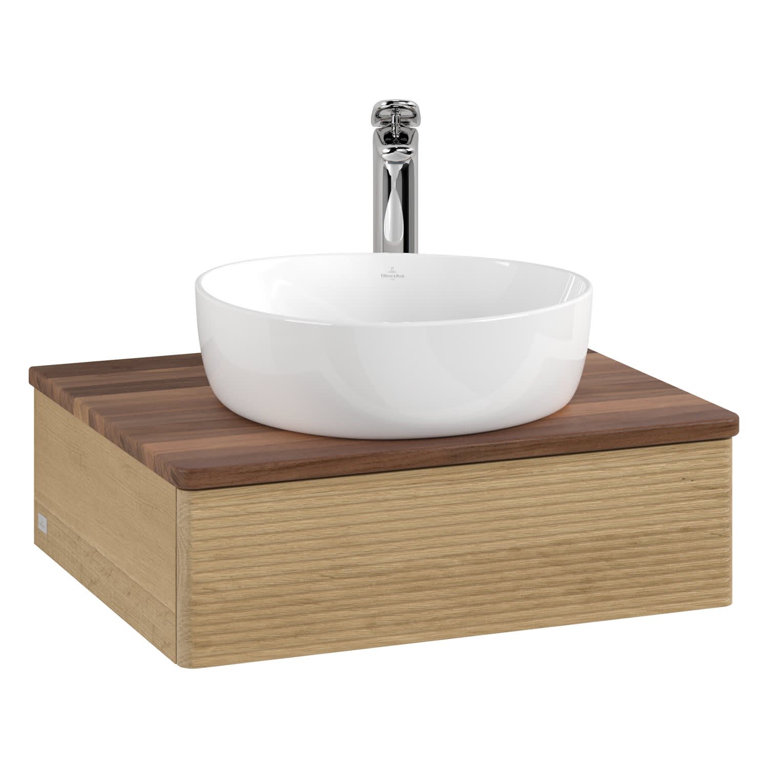 Villeroy & Boch Antao Waschbeckenunterschrank, 60 x 19 cm, 1 Auszug mit LED-Licht, Front mit Struktur, mit Hahnloch