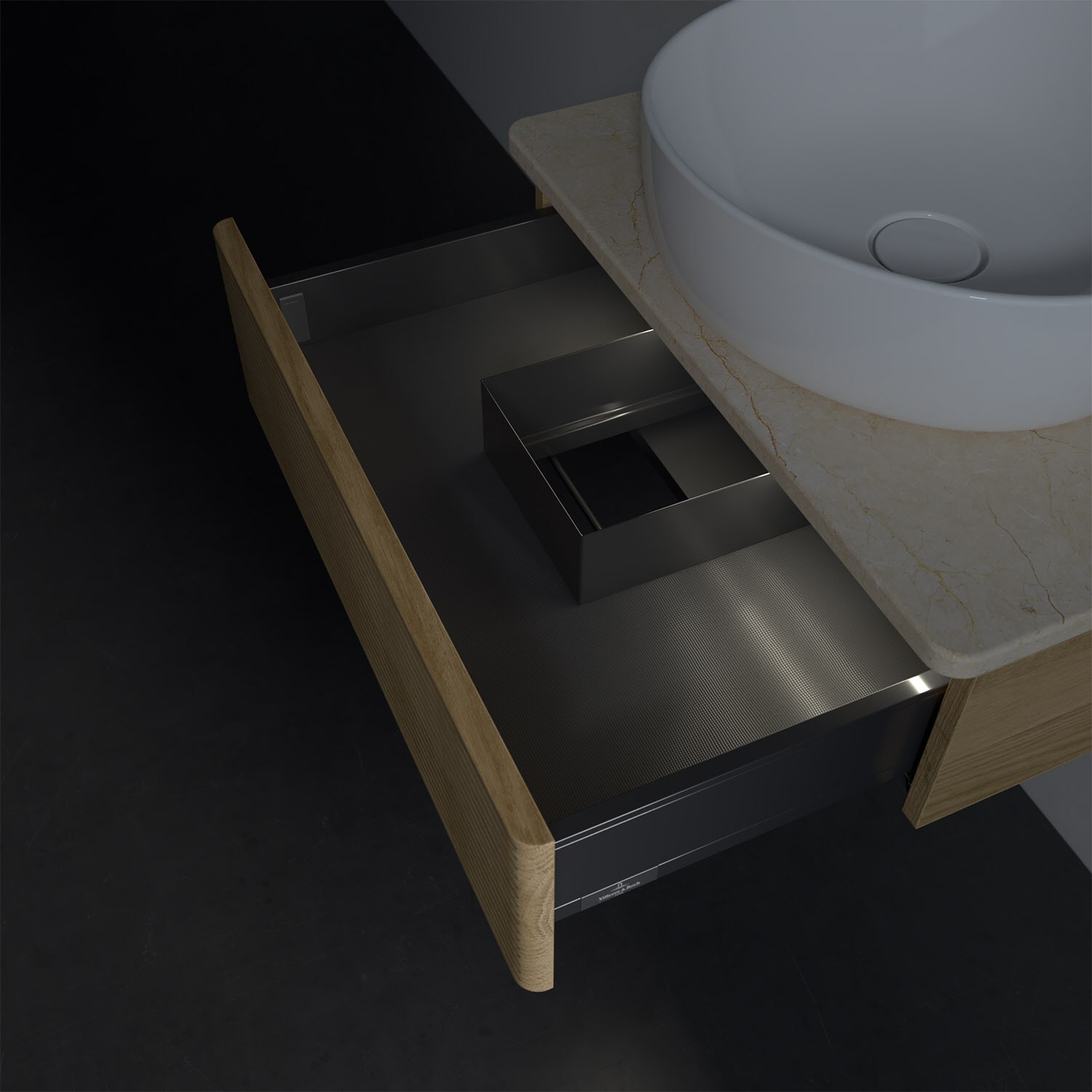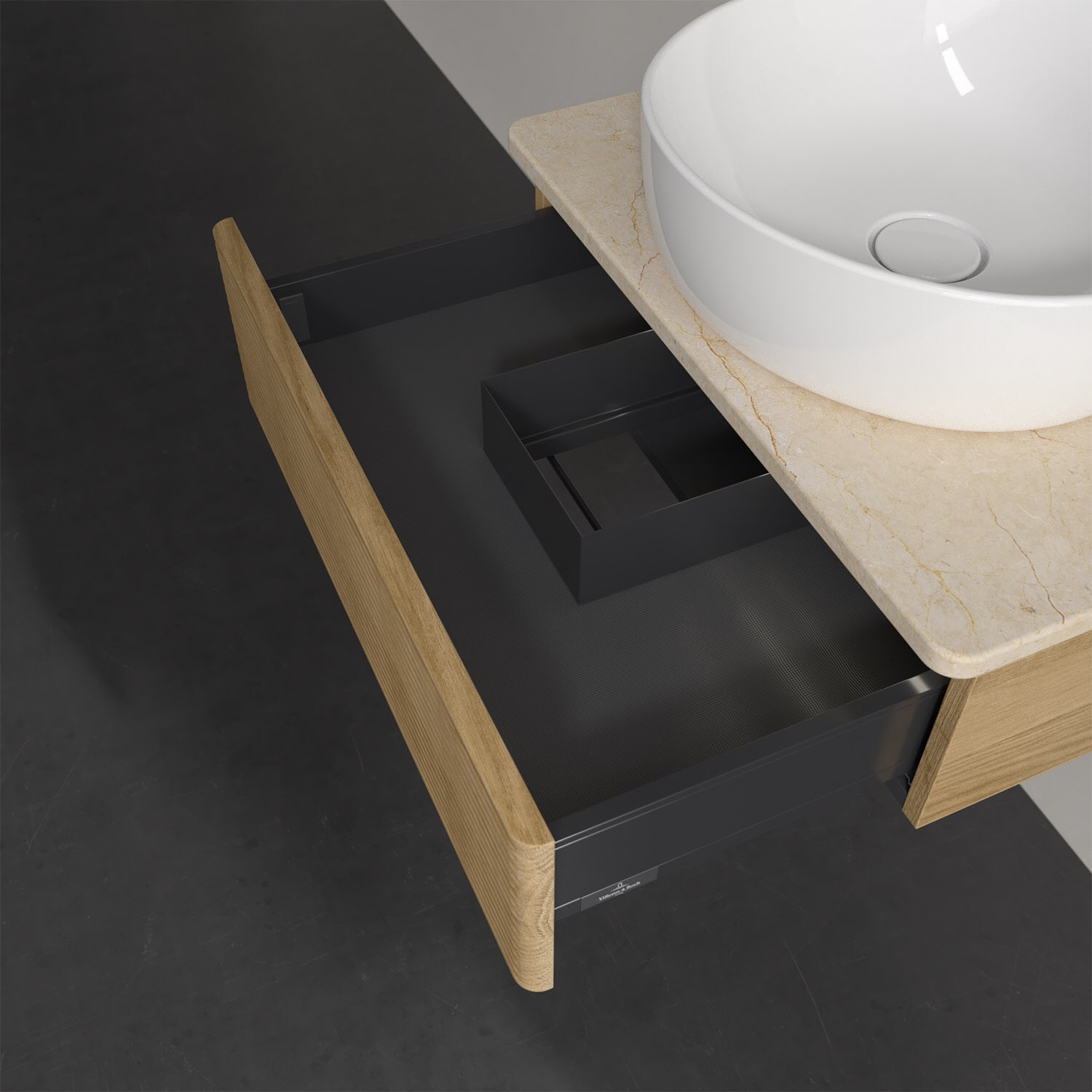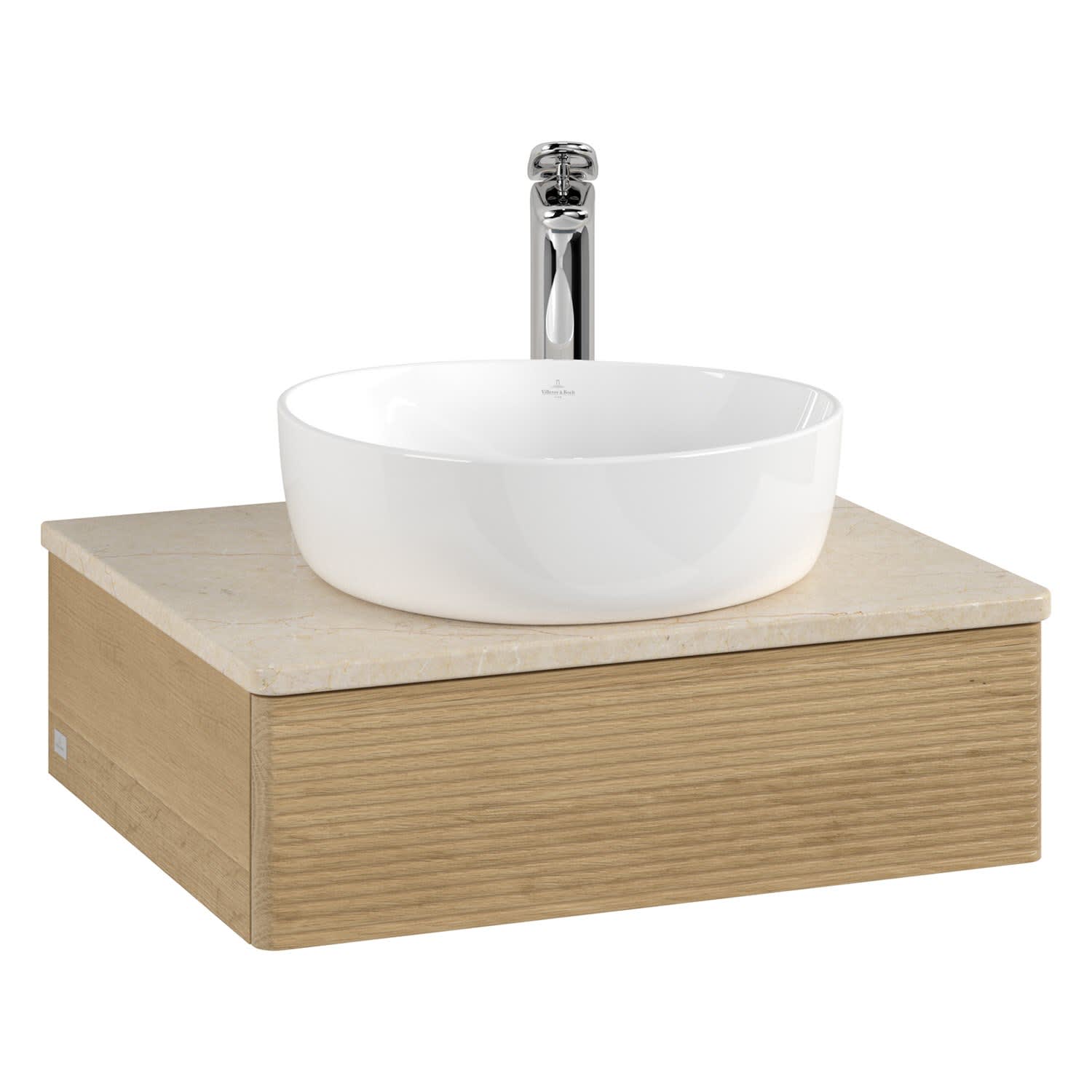Villeroy & Boch Antao Waschbeckenunterschrank, 60 x 19 cm, 1 Auszug mit LED-Licht, Front mit Struktur, mit Hahnloch