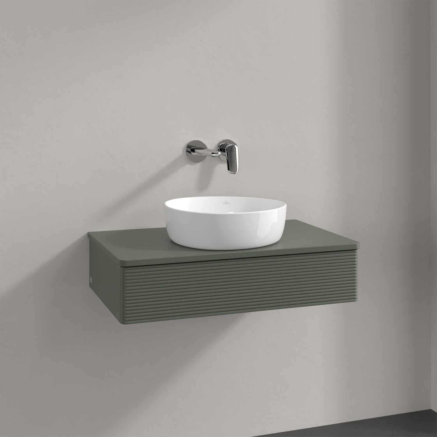 Villeroy & Boch Antao Waschbeckenunterschrank, 80 x 19 cm, 1 Auszug mit LED-Licht, Front mit Struktur, mit Hahnloch