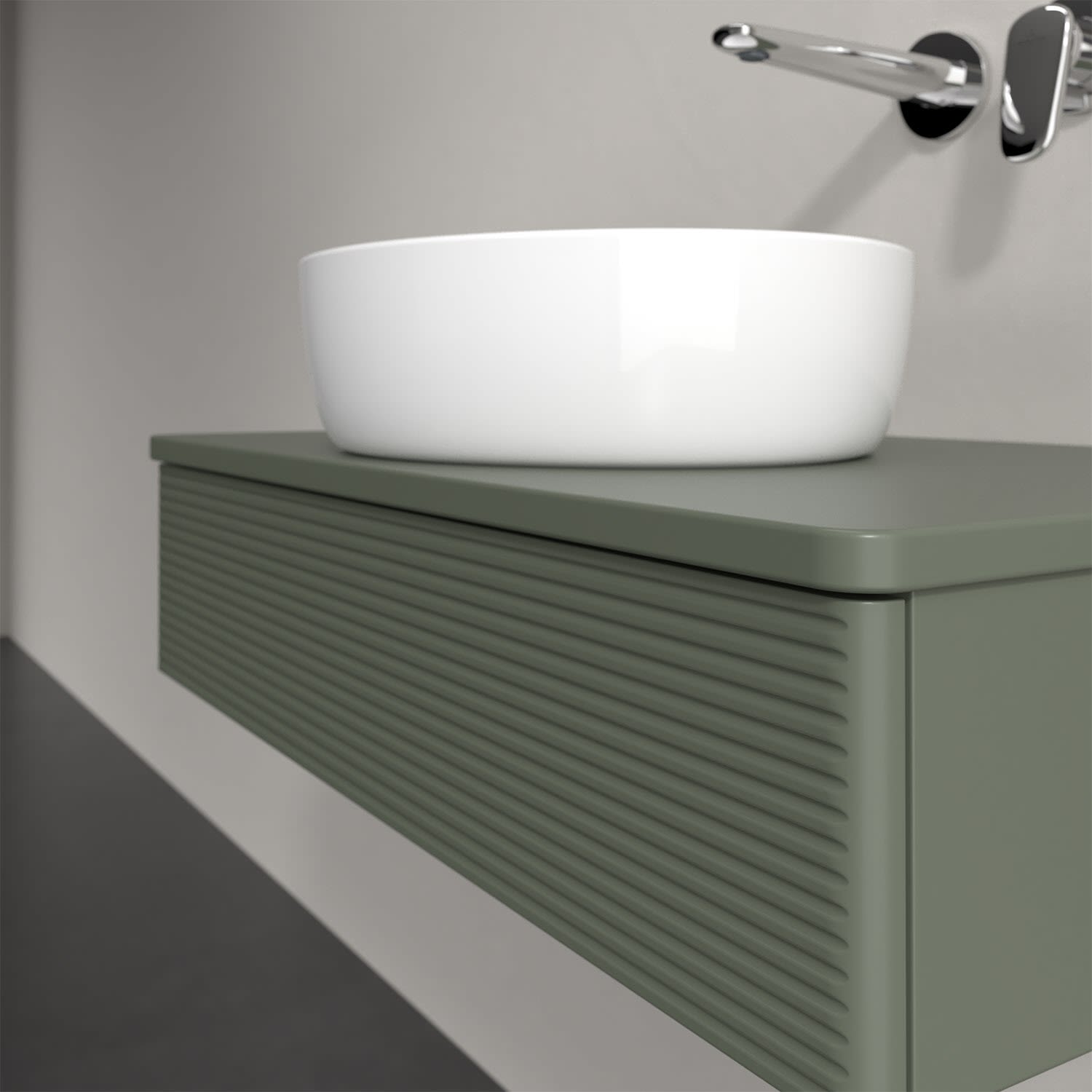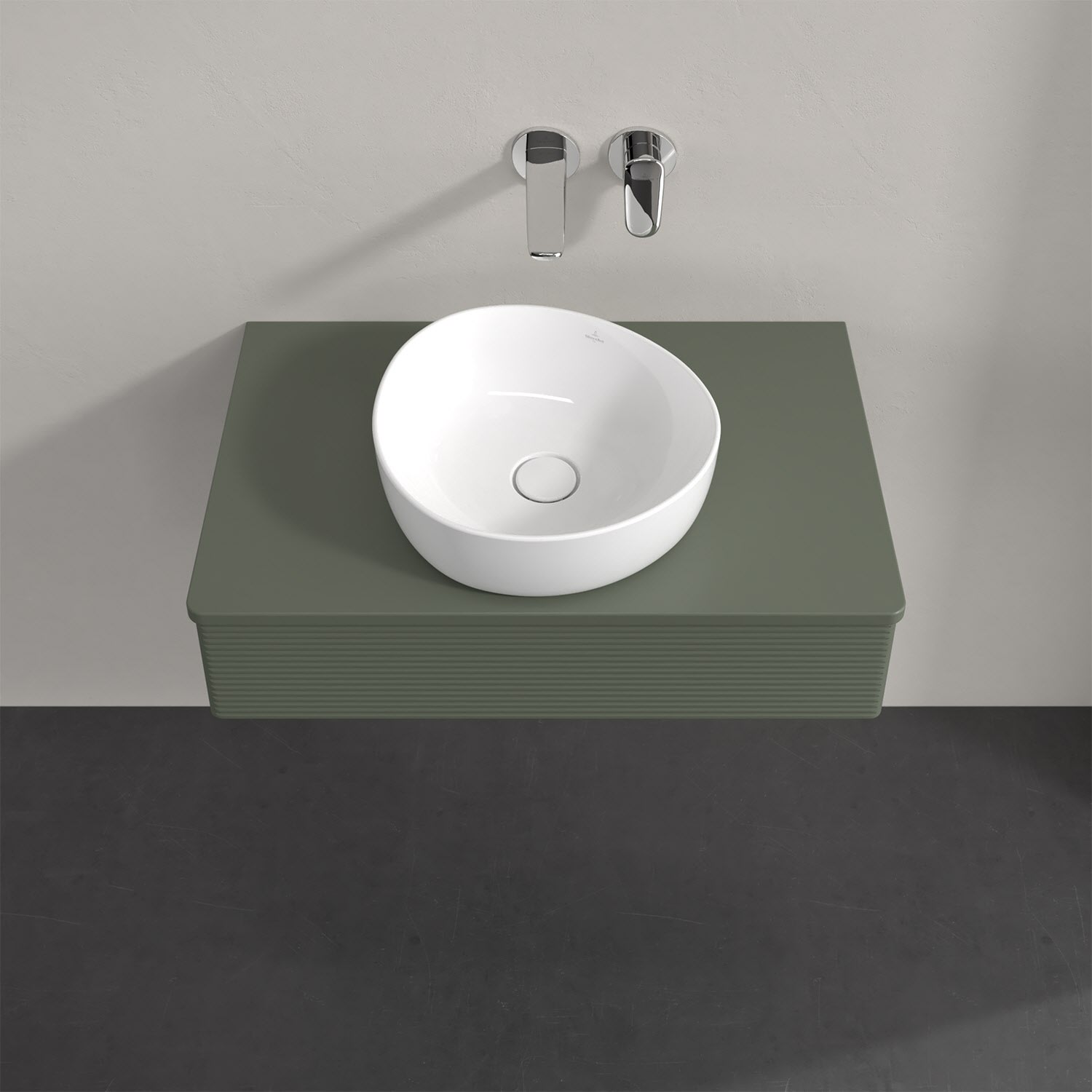 Für diesen Waschbeckenunterschrank stehen Ihnen Aufsatzwaschtische aus verschiedenen Serien zur Verfügung (siehe "Passliste" unter Downloads). Ein ausgewähltes Beispiel finden Sie im Zubehör. Den Waschtisch bitte separat mitbestellen.