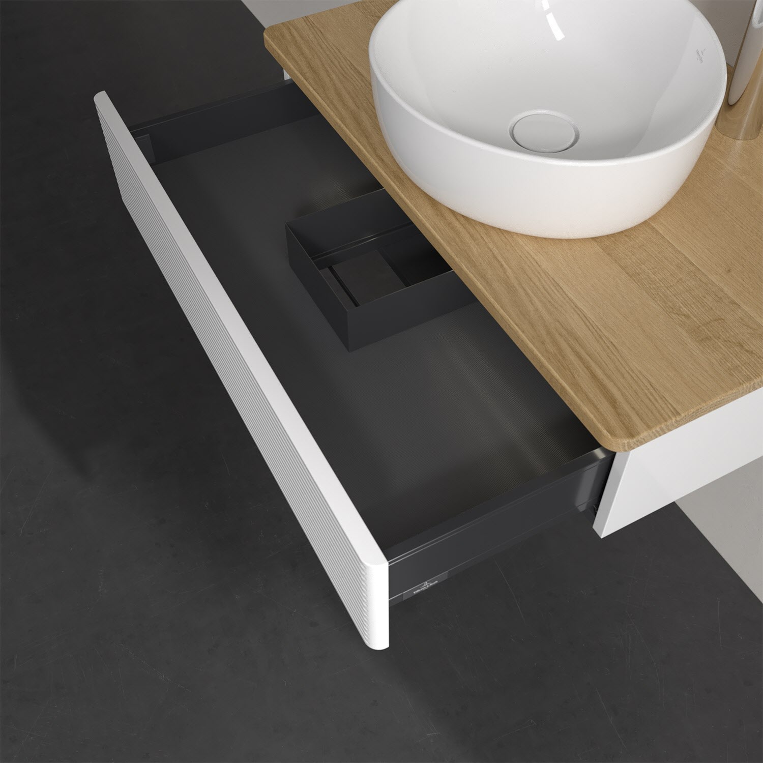 Villeroy & Boch Antao Waschbeckenunterschrank, 80 x 19 cm, 1 Auszug mit LED-Licht, Front mit Struktur, mit Hahnloch