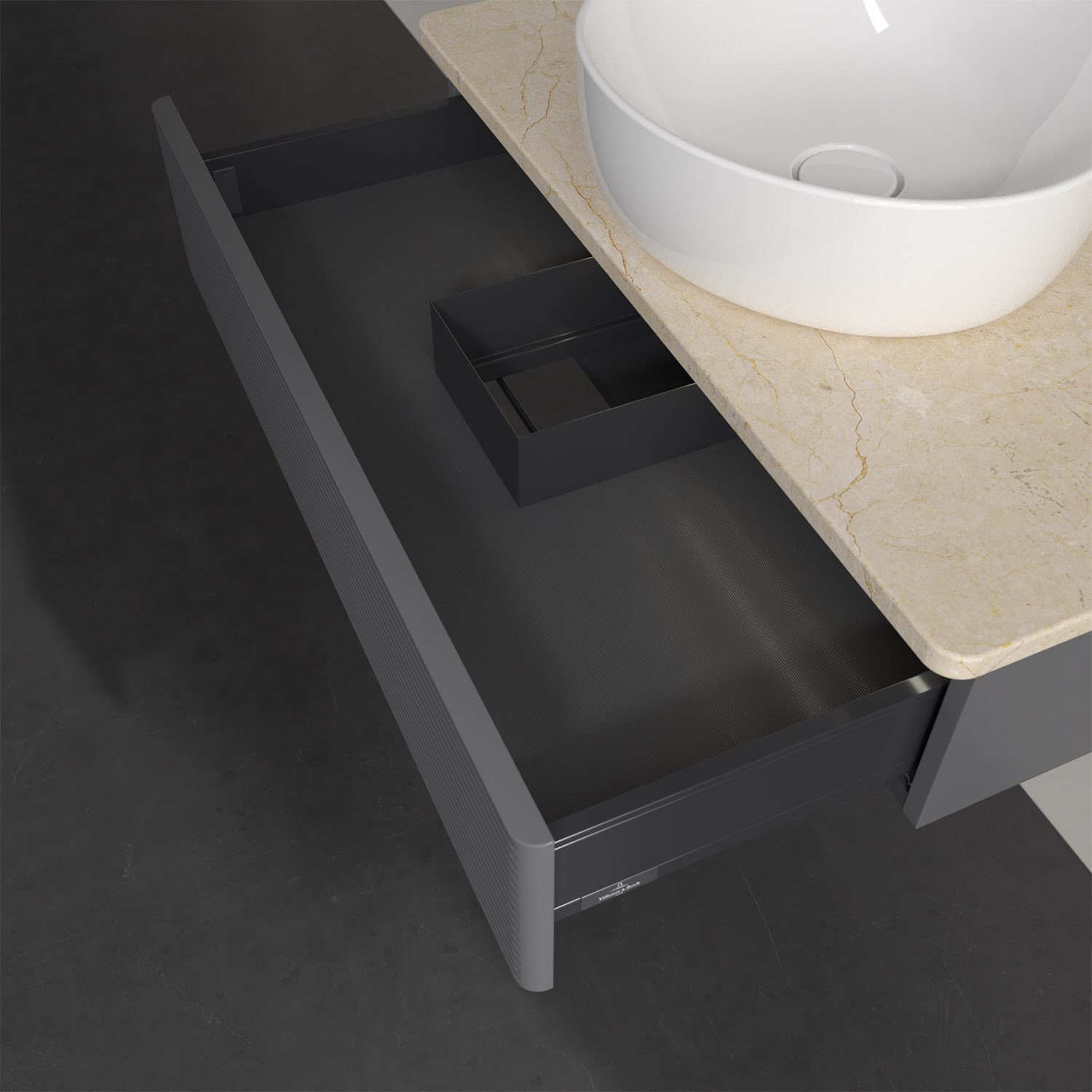 Villeroy & Boch Antao Waschbeckenunterschrank, 80 x 19 cm, 1 Auszug mit LED-Licht, Front mit Struktur, mit Hahnloch