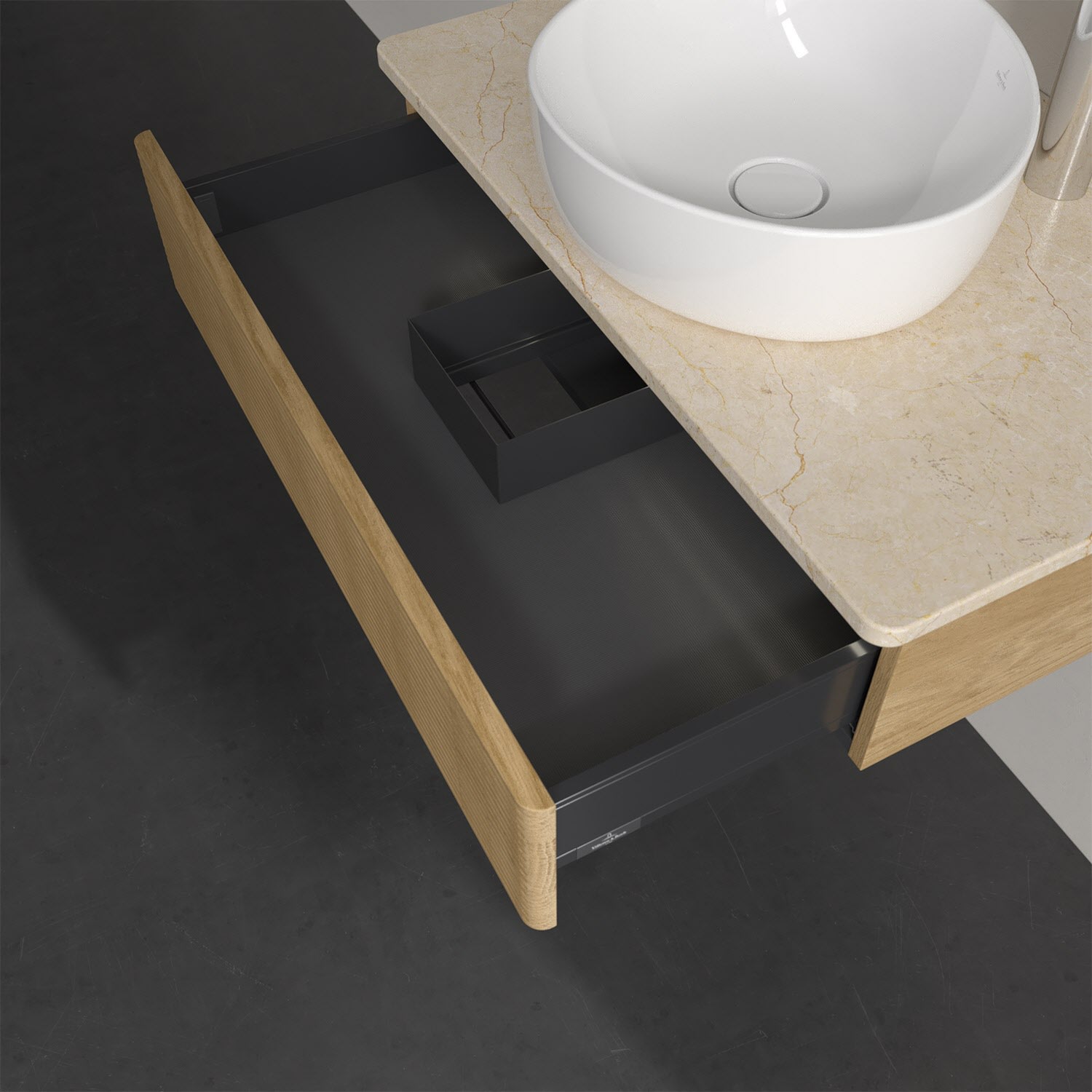Villeroy & Boch Antao Waschbeckenunterschrank, 80 x 19 cm, 1 Auszug mit LED-Licht, Front mit Struktur, mit Hahnloch