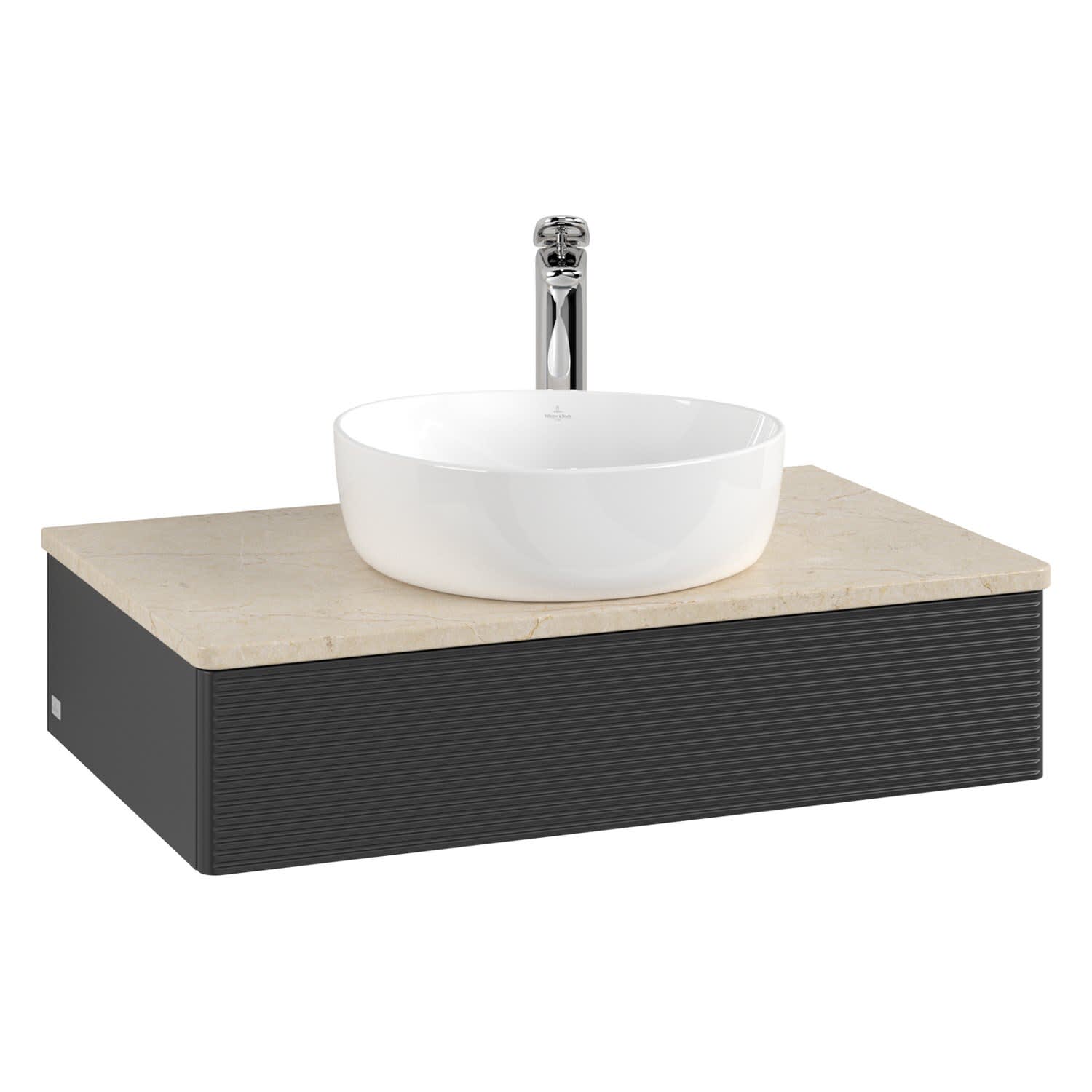 Villeroy & Boch Antao Waschbeckenunterschrank, 80 x 19 cm, 1 Auszug mit LED-Licht, Front mit Struktur, mit Hahnloch