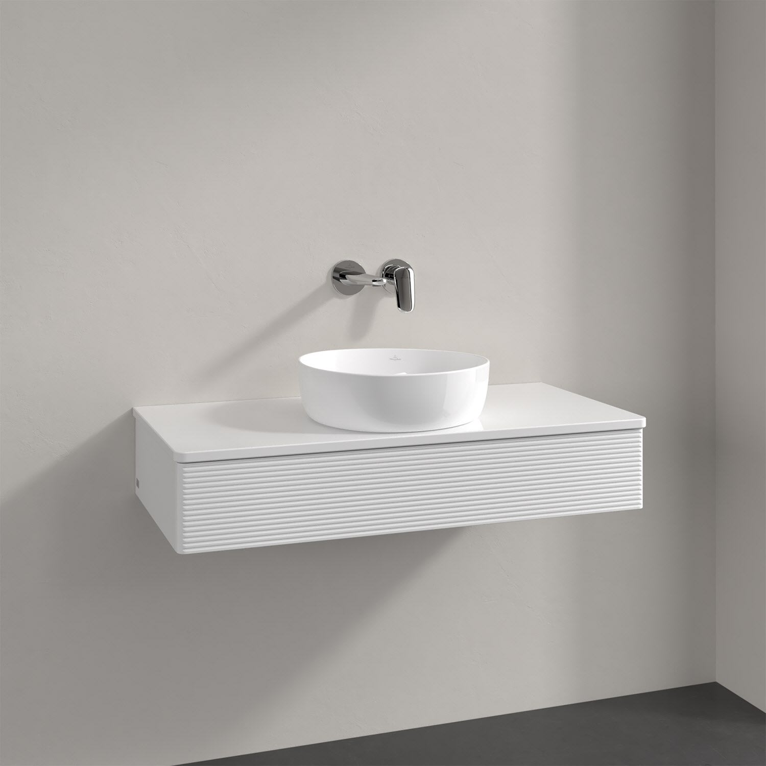 Villeroy & Boch Antao Waschbeckenunterschrank, 100 x 19 cm, 1 Auszug mit LED-Licht, Front mit Struktur, mit Hahnloch
