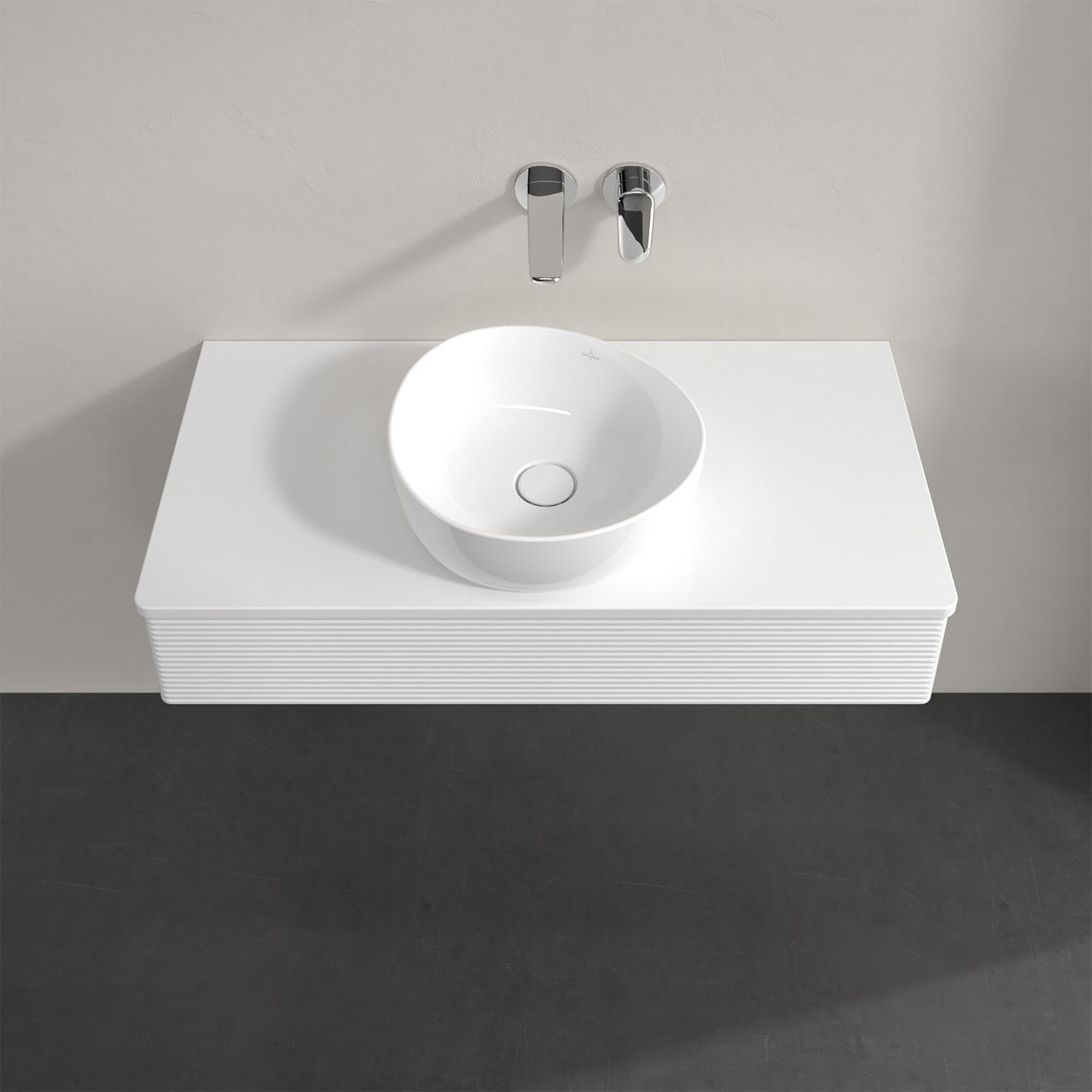Für diesen Waschbeckenunterschrank stehen Ihnen Aufsatzwaschtische aus verschiedenen Serien zur Verfügung (siehe "Passliste" unter Downloads). Ein ausgewähltes Beispiel finden Sie im Zubehör. Den Waschtisch bitte separat mitbestellen.