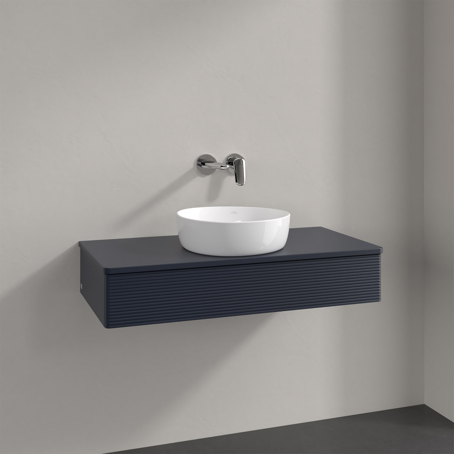 Villeroy & Boch Antao Waschbeckenunterschrank, 100 x 19 cm, 1 Auszug mit LED-Licht, Front mit Struktur, mit Hahnloch
