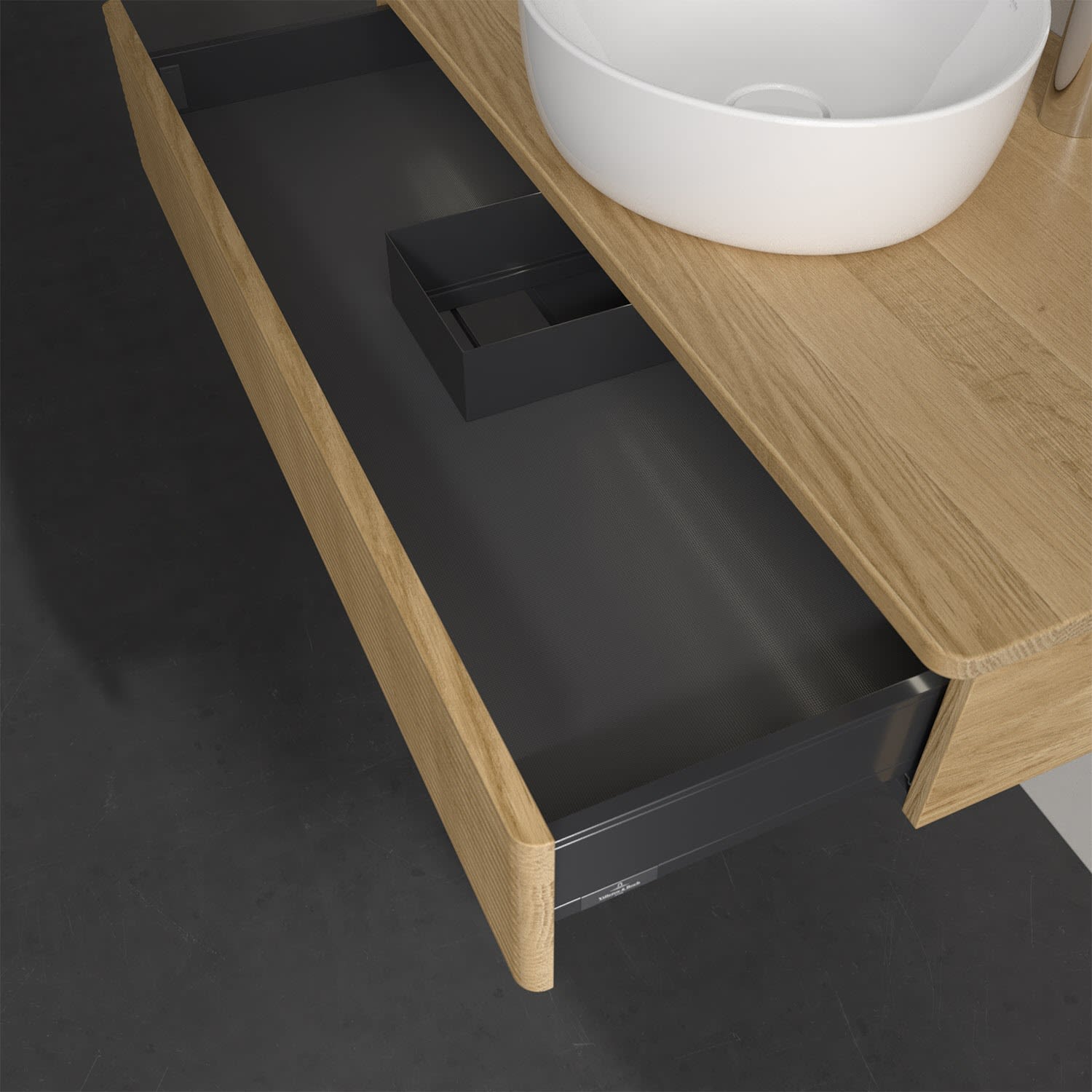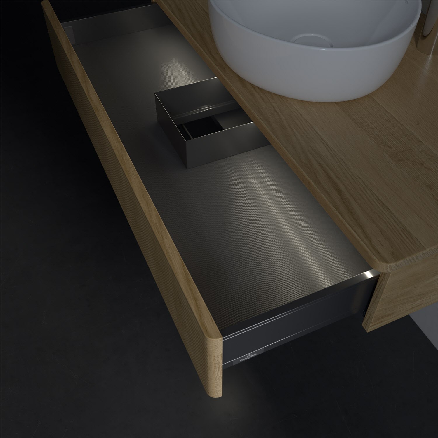 Villeroy & Boch Antao Waschbeckenunterschrank, 100 x 19 cm, 1 Auszug mit LED-Licht, Front mit Struktur, mit Hahnloch