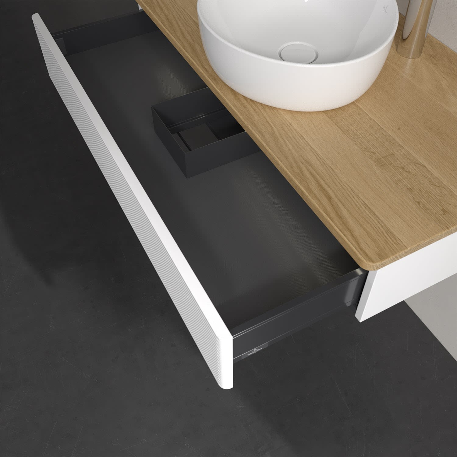Villeroy & Boch Antao Waschbeckenunterschrank, 100 x 19 cm, 1 Auszug mit LED-Licht, Front mit Struktur, mit Hahnloch