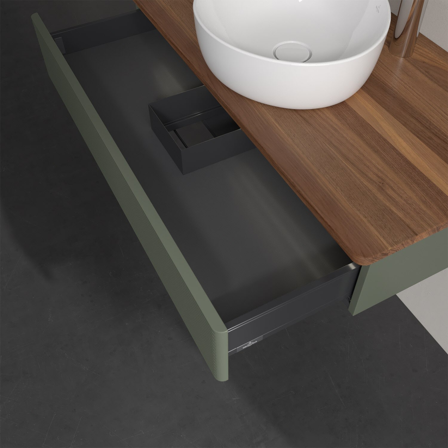 - kein Umfallen oder Verrutschen von Pflegeprodukten in den Schubladen dank rutschhemmendem Boden