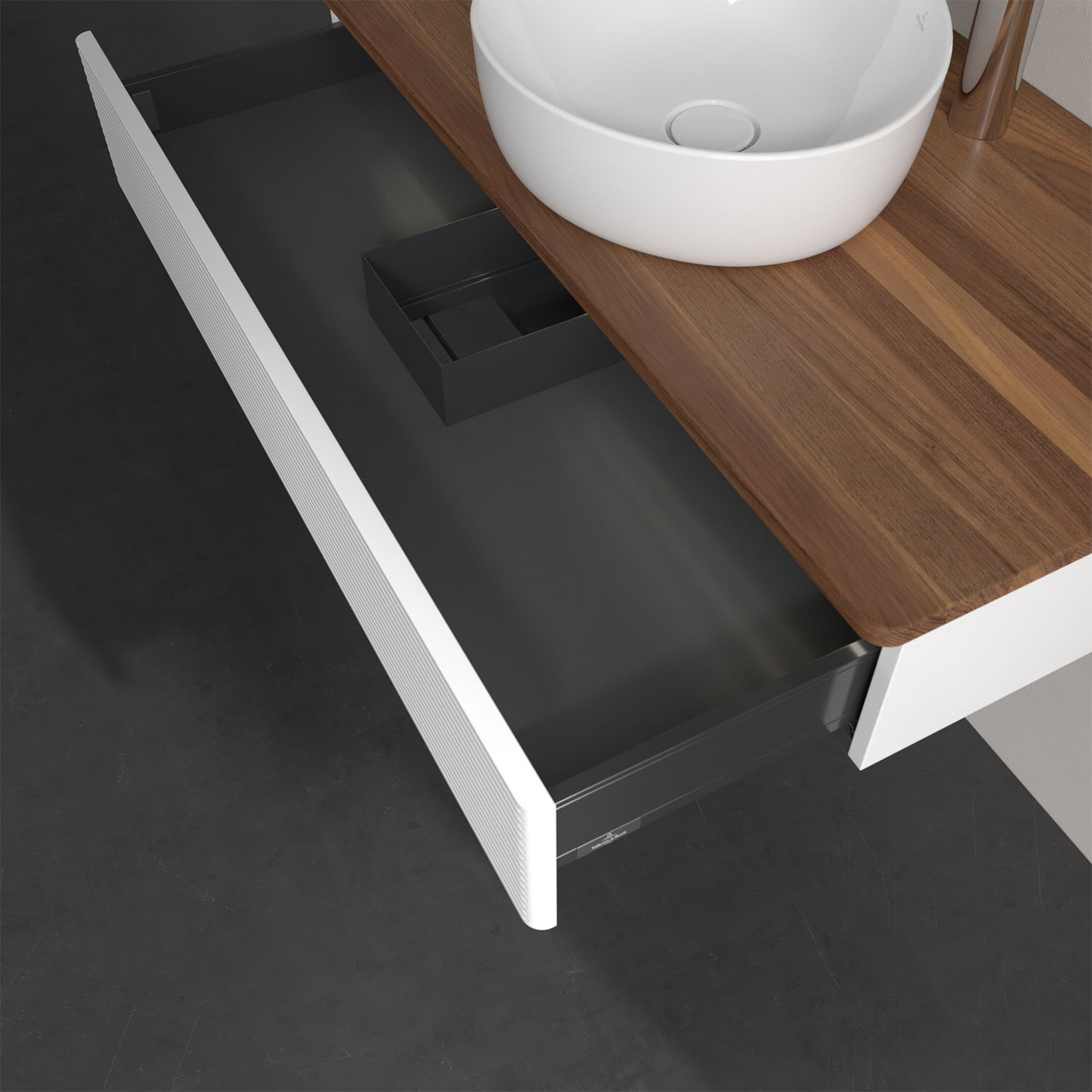 - kein Umfallen oder Verrutschen von Pflegeprodukten in den Schubladen dank rutschhemmendem Boden
