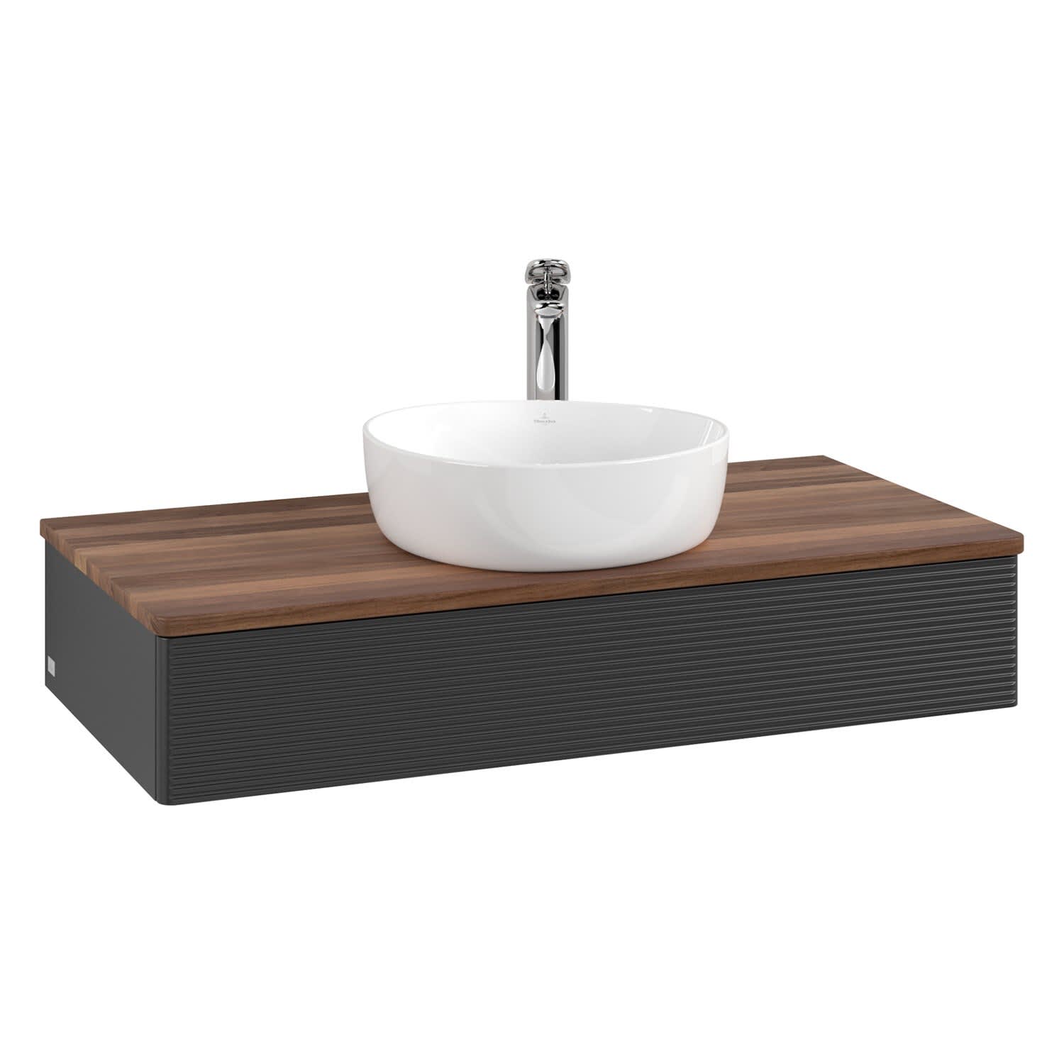 Villeroy & Boch Antao Waschbeckenunterschrank, 100 x 19 cm, 1 Auszug mit LED-Licht, Front mit Struktur, mit Hahnloch