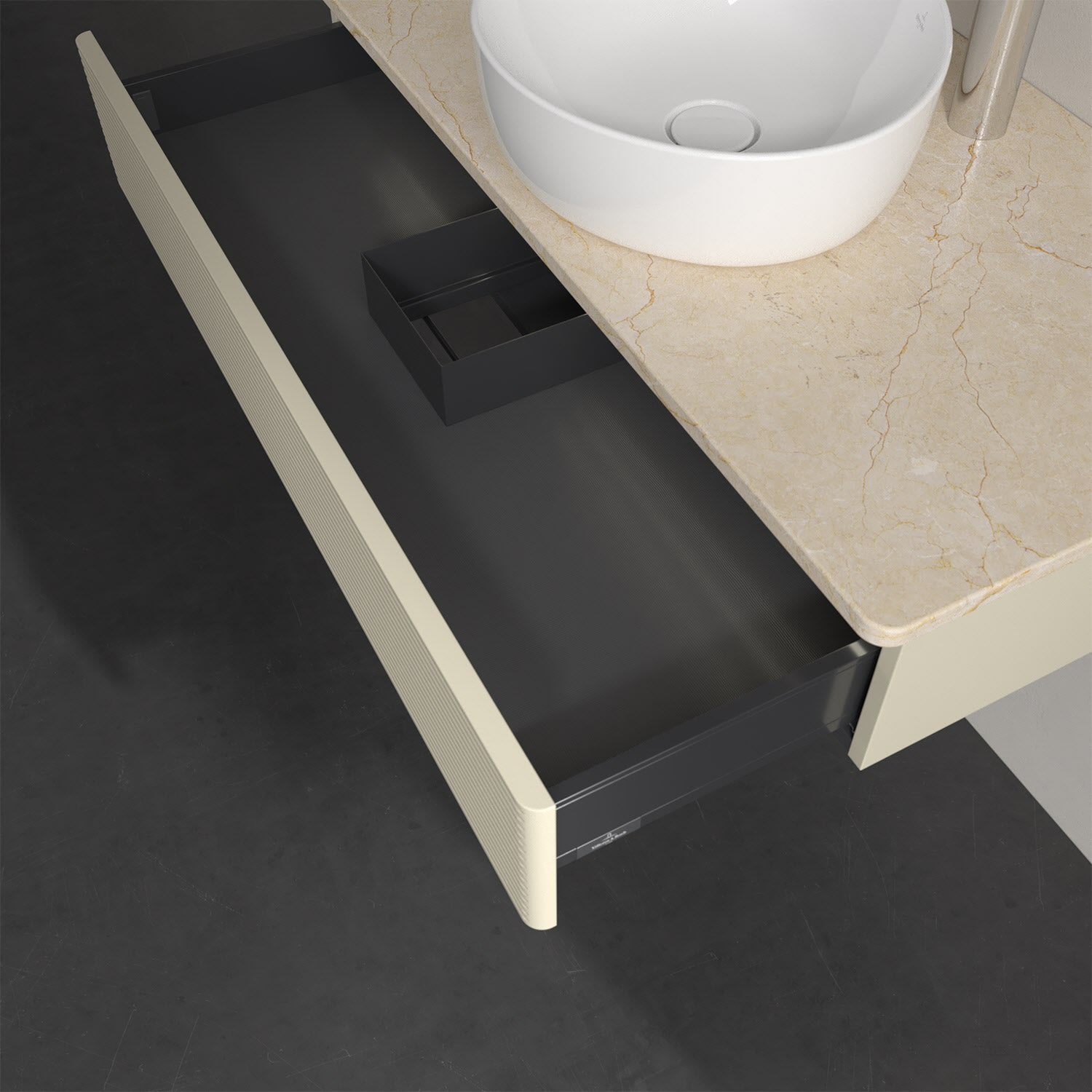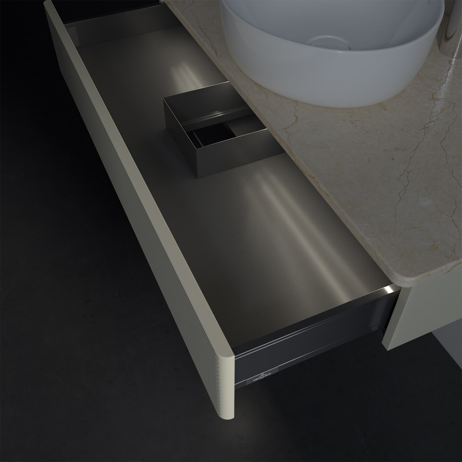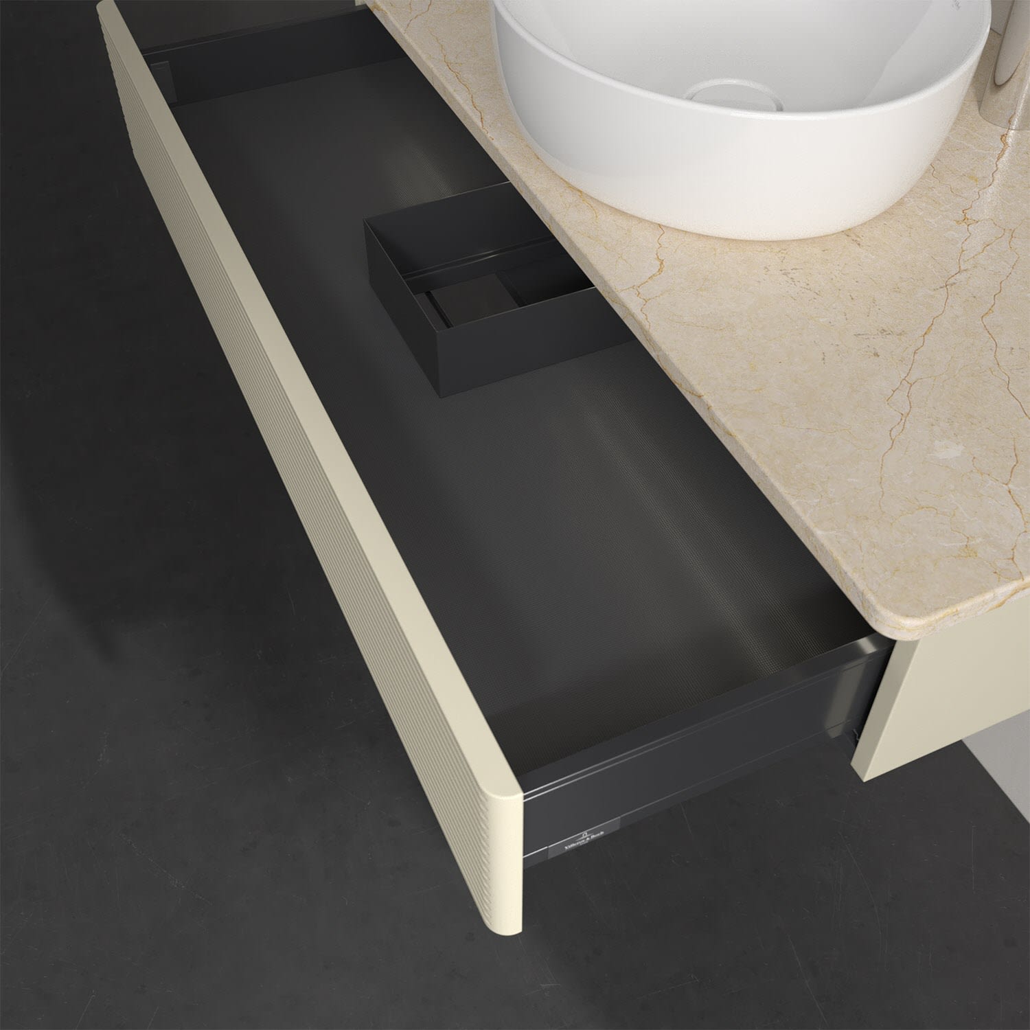 - kein Umfallen oder Verrutschen von Pflegeprodukten in den Schubladen dank rutschhemmendem Boden