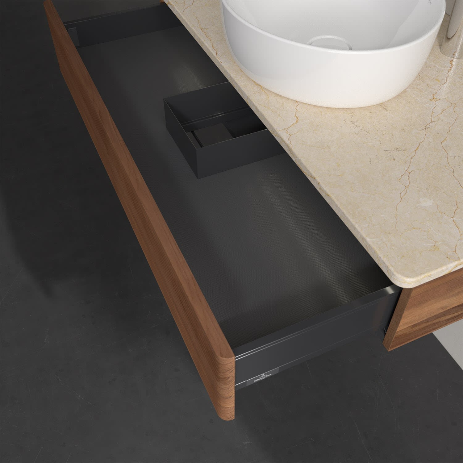 - kein Umfallen oder Verrutschen von Pflegeprodukten in den Schubladen dank rutschhemmendem Boden