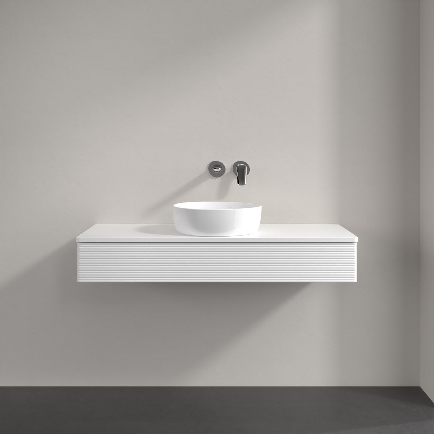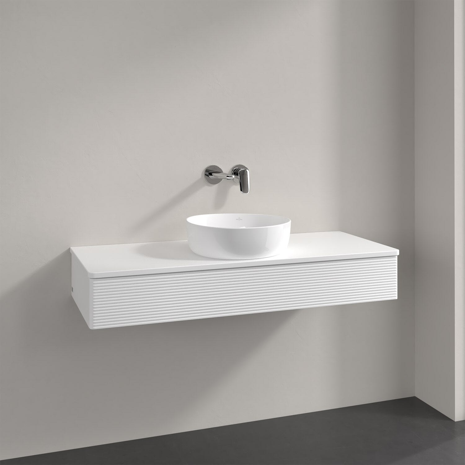 Villeroy & Boch Antao Waschbeckenunterschrank, 120 x 19 cm, 1 Auszug mit LED-Licht, Front mit Struktur, mit Hahnloch, für Waschtisch mittig