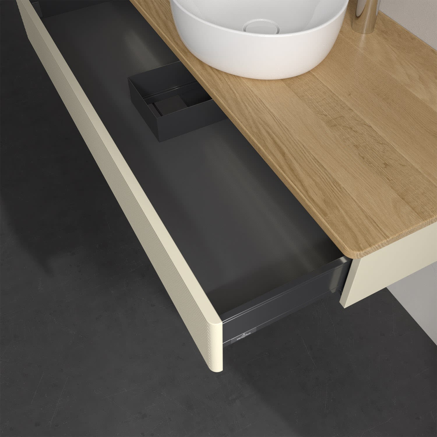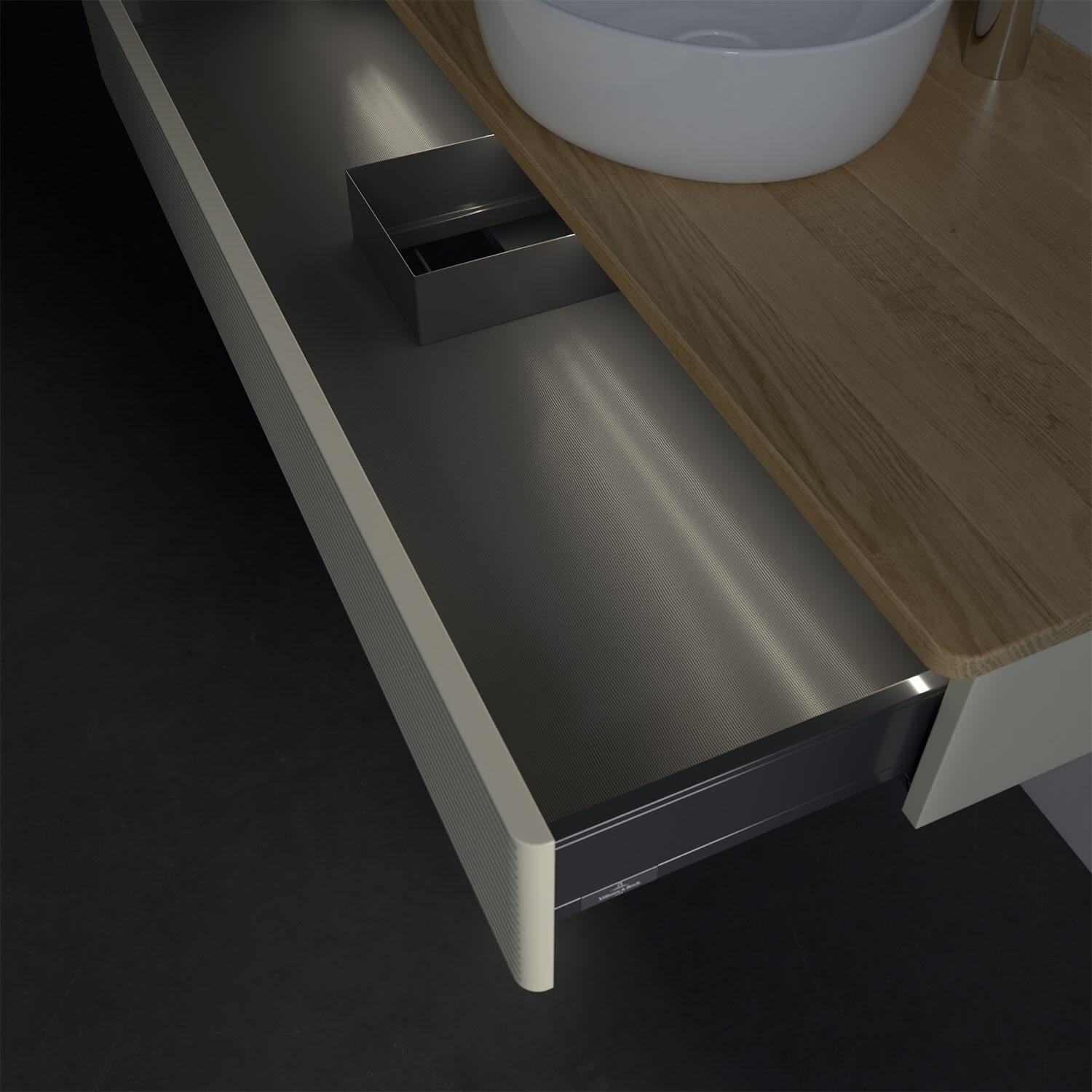 Villeroy & Boch Antao Waschbeckenunterschrank, 120 x 19 cm, 1 Auszug mit LED-Licht, Front mit Struktur, mit Hahnloch, für Waschtisch mittig