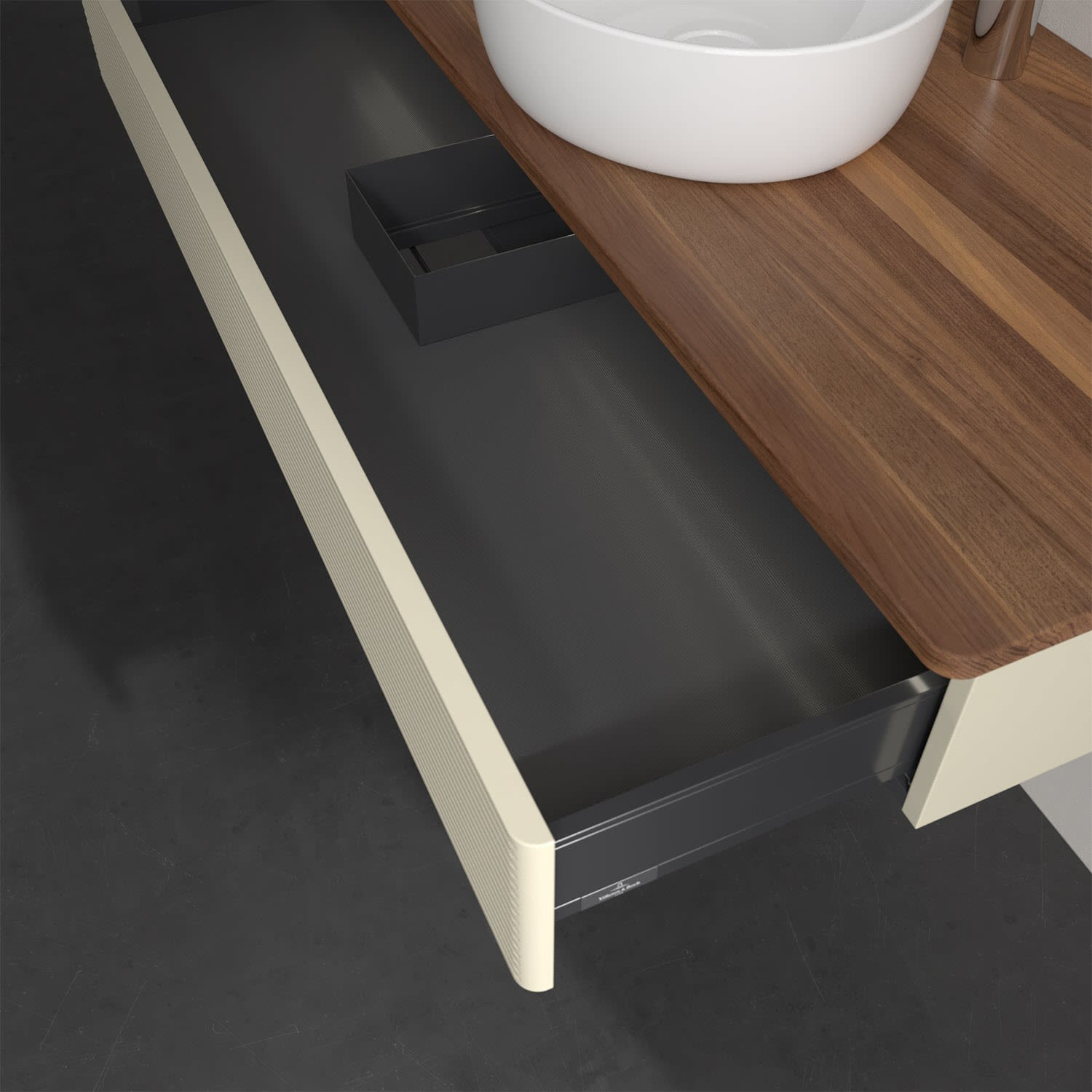 Villeroy & Boch Antao Waschbeckenunterschrank, 120 x 19 cm, 1 Auszug mit LED-Licht, Front mit Struktur, mit Hahnloch, für Waschtisch mittig