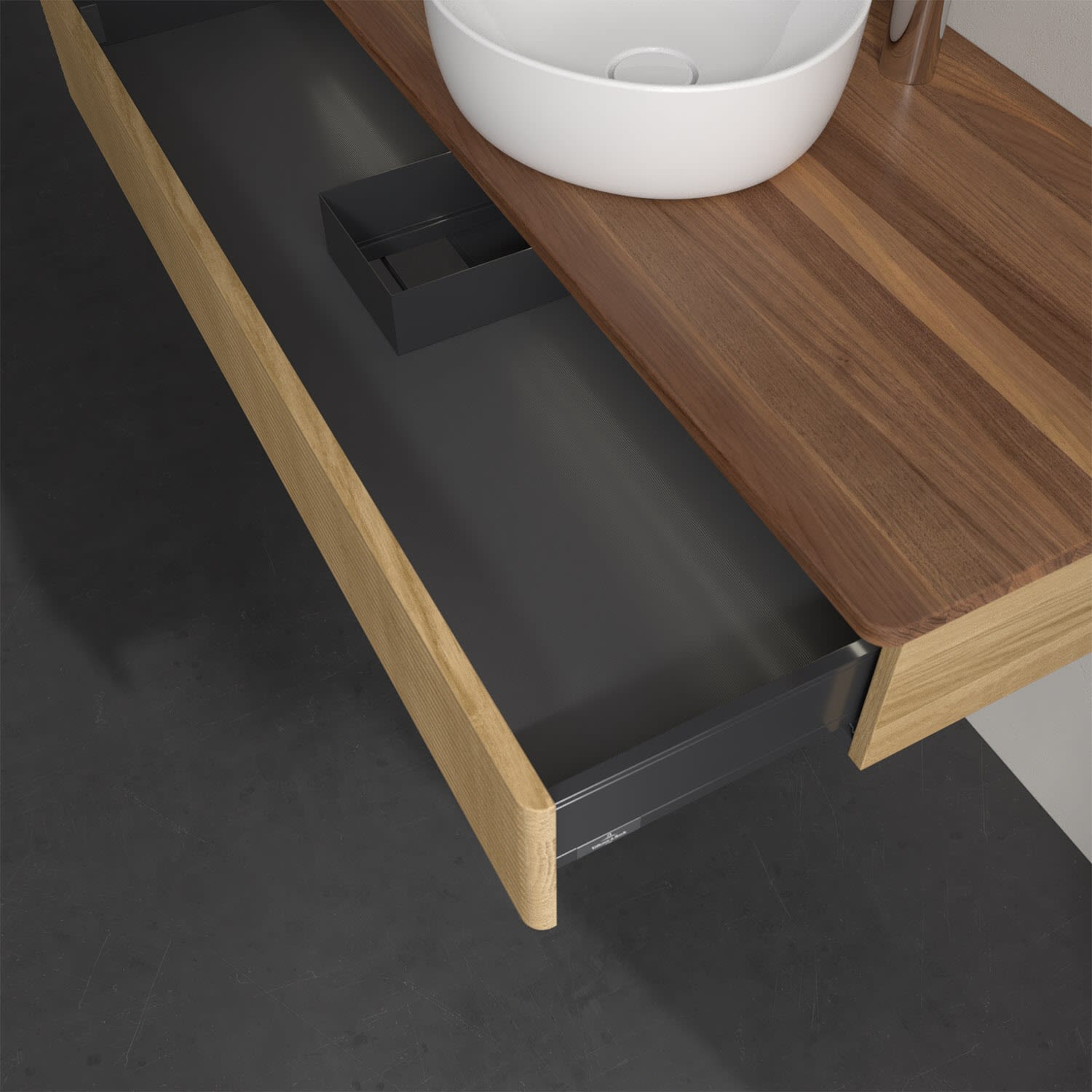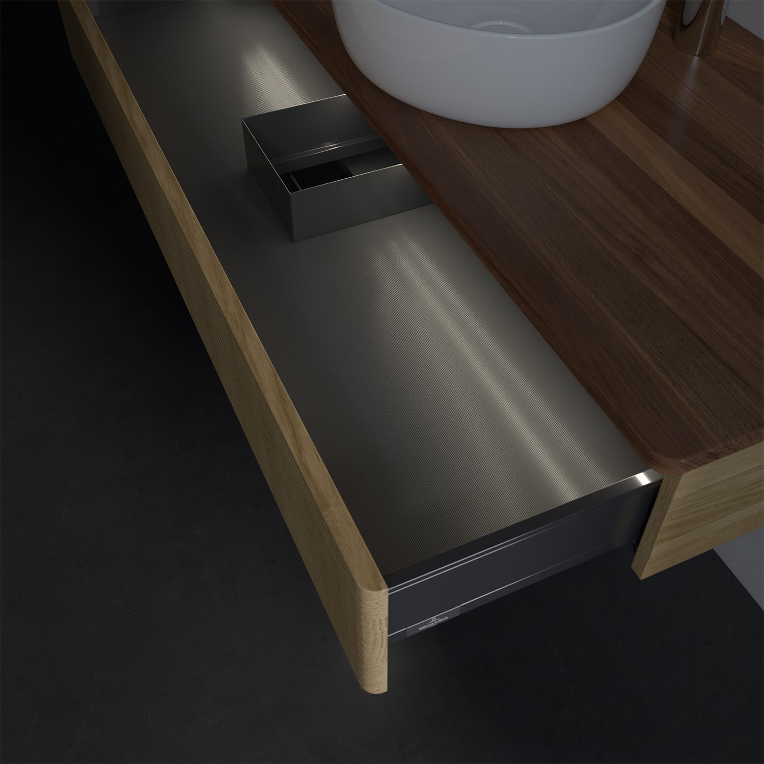 Villeroy & Boch Antao Waschbeckenunterschrank, 120 x 19 cm, 1 Auszug mit LED-Licht, Front mit Struktur, mit Hahnloch, für Waschtisch mittig