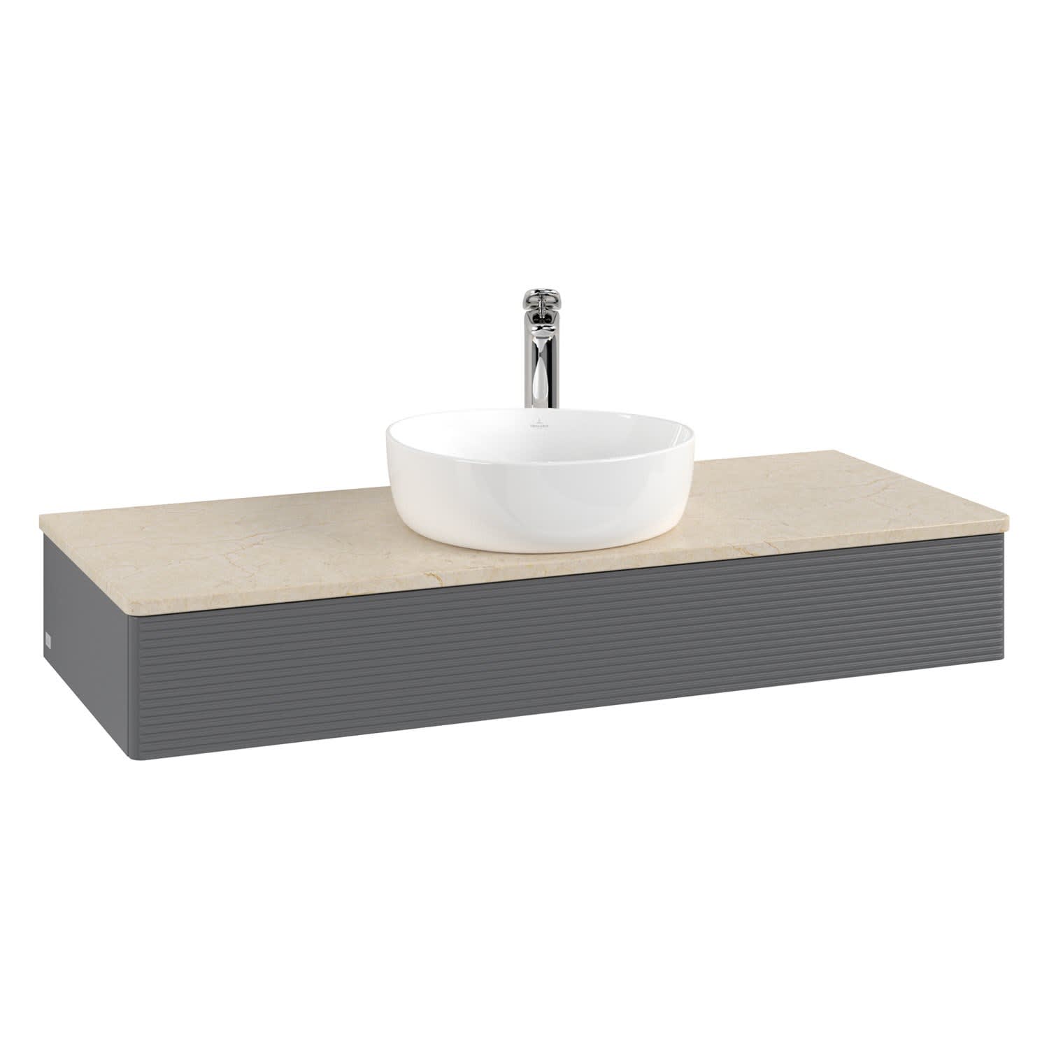 Villeroy & Boch Antao Waschbeckenunterschrank, 120 x 19 cm, 1 Auszug mit LED-Licht, Front mit Struktur, mit Hahnloch, für Waschtisch mittig